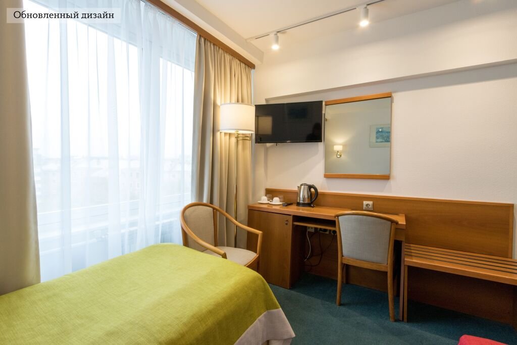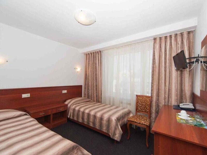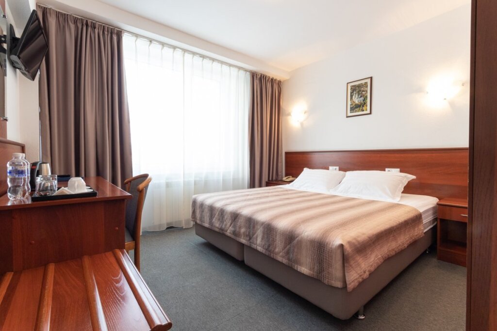 Семиэтажное здание отеля состоит из 300 номеров и рассчитано на единовременное размещение до 500 человек. Гостей ожидают одноместные и двухместные номера категории Стандарт, Комфорт, Люкс, Делюкс. Номера с классическим интерьером укомплектованы необходимыми предметами мебельного гарнитура, бытовой техникой – телевизором, электрочайником, холодильником, оснащены санузлом с душем или ванной.