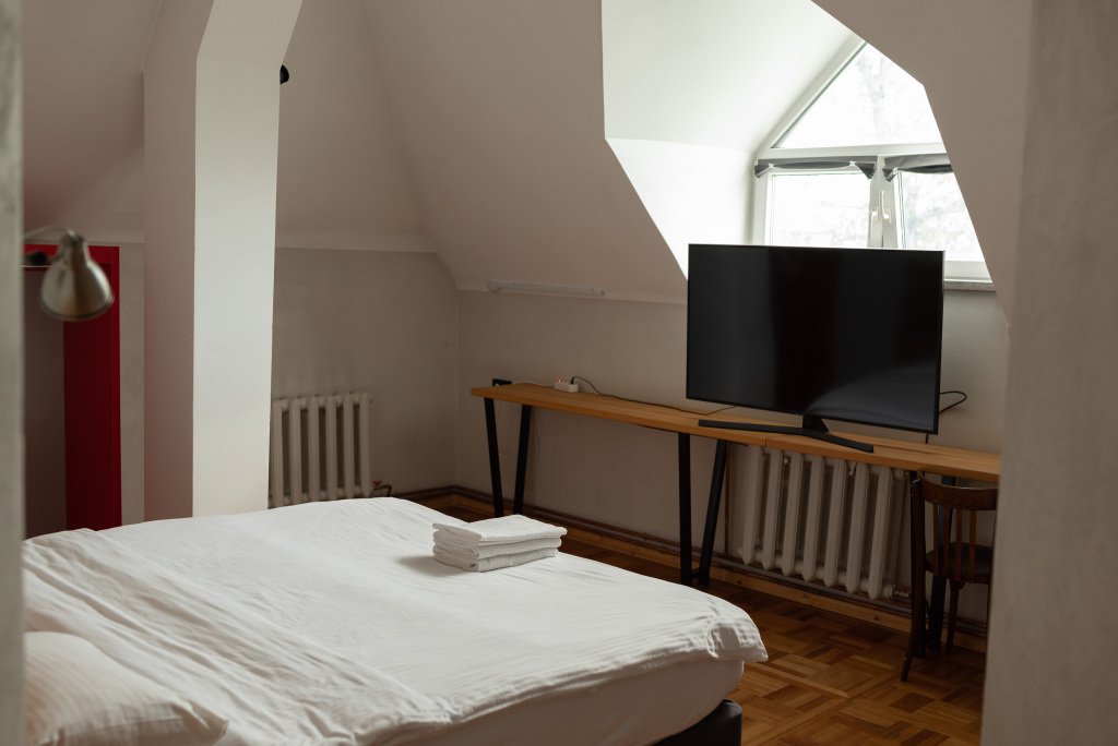 Номер обставлен и оснащён необходимым, чтобы отдохнуть после долгого и насыщенного дня. Имеются телевизор и фен.