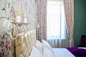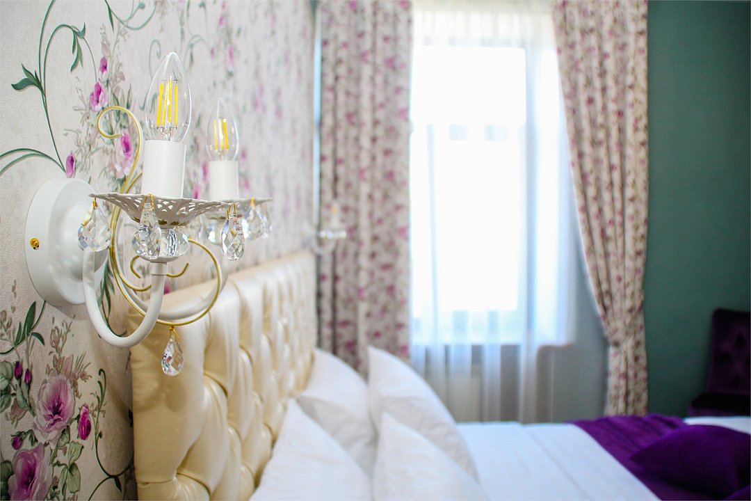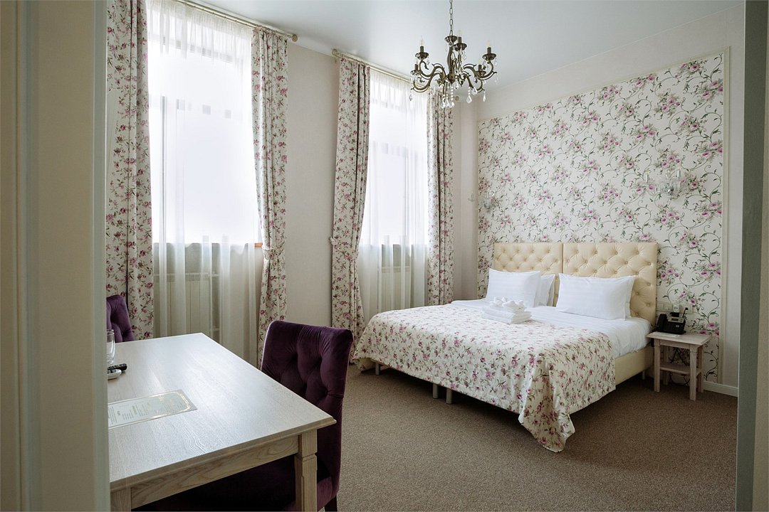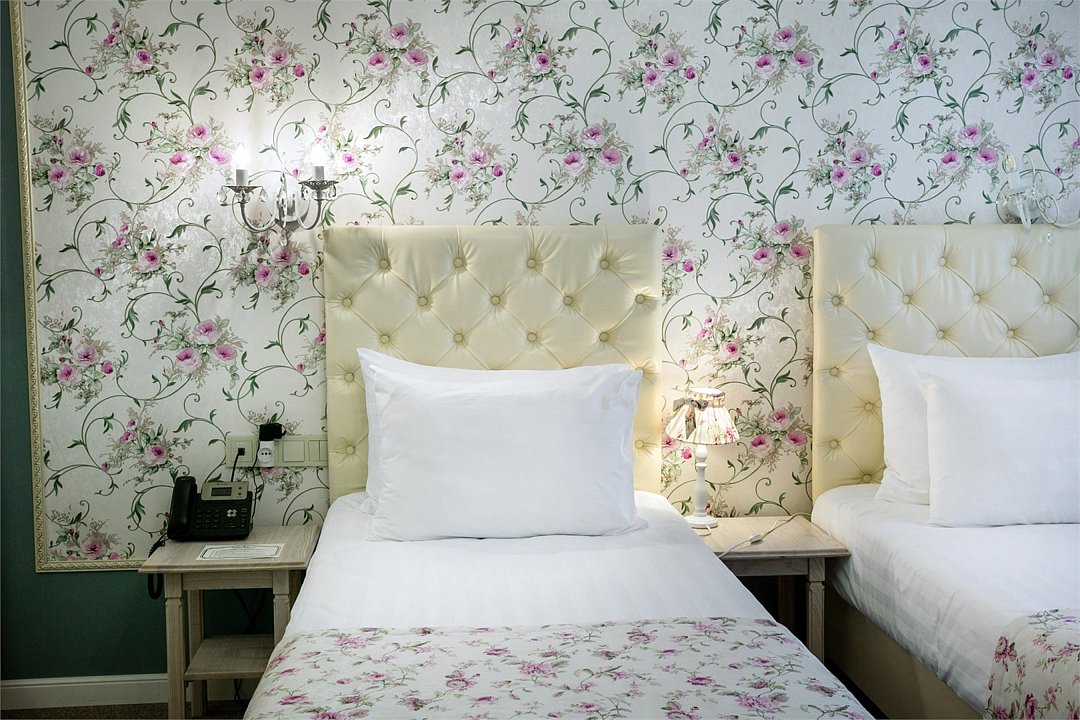 Авторское название стиля этого номера «Флора» возникло под впечатлением интерьерного стиля «Прованс». Основной мотив интерьера «Флора» - вьющееся растение, что придает номеру легкость и воздушность. Для стиля характерны плавность форм и изящество линий. Стеклянные и текстильные светильники дополняют цветочный рисунок обоев и плавные линии мебели. Элементы интерьера стилизованы под цветок (пион, роза, ирис) с зелеными вьющимися листочками. Стиль оформлен в разноцветной гамме с характерными для него цветами: фиолетовый, розовый, бежевый, бирюзовый и белый. В номерах стоит кровать-конструктор, которая при необходимости трансформируется в одну двуспальную кровать размером 180 x 190 см (сдвига не чувствуется) или две раздельные кровати размером 90 x 190 см каждая.Услуги и удобства