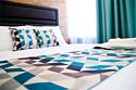 Стиль «норд» - это авторское воплощение скандинавского стиля в интерьере нашего отеля. Дизайн отличается простотой, спокойствием, сдержанностью и минимализмом – и при этом обладает особым очарованием и выразительностью. Типичный интерьер комнаты в стиле «норд» – светлое, свободное пространство, деревянная мебель, уютный текстиль и сдержанный декор. Интерьер номера выдержан в светлых, прохладных тонах. Акцентные цвета – синие и бирюзовые оттенки моря. Белый цвет подчеркивает пространство. Основной декоративный элемент – стена, отделанная деревом возле изголовья постели. Дополняет оформление номера текстиль глубоких тонов с геометрическим орнаментом. Номер выглядит оригинально за счет нестандартных стеклянных плафонов в виде шаров. В номерах стоит полутораспальная кровать размером 140 х 190 см.Услуги и удобства