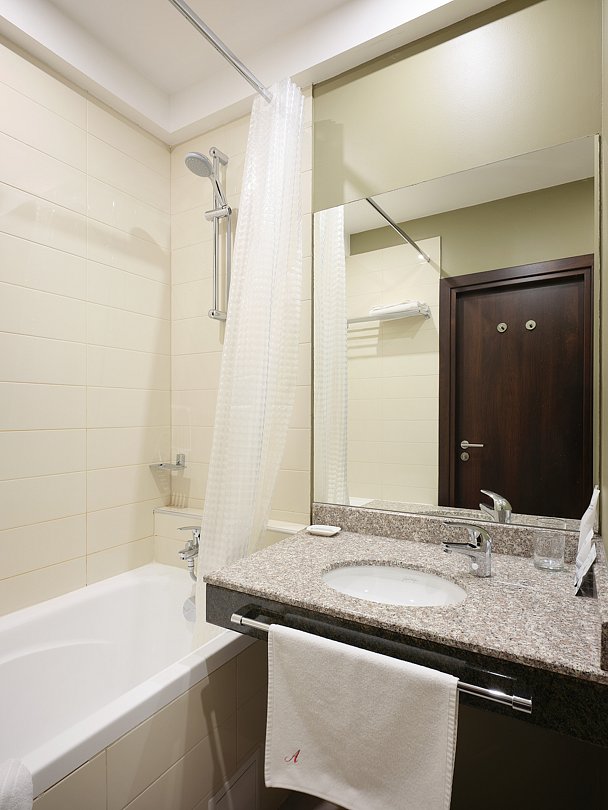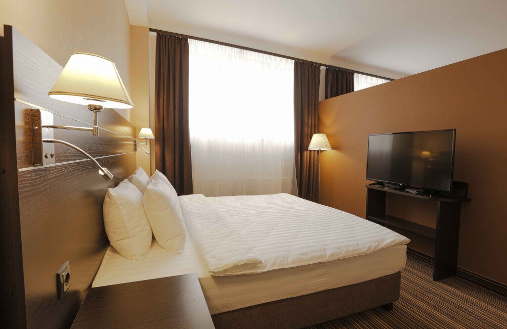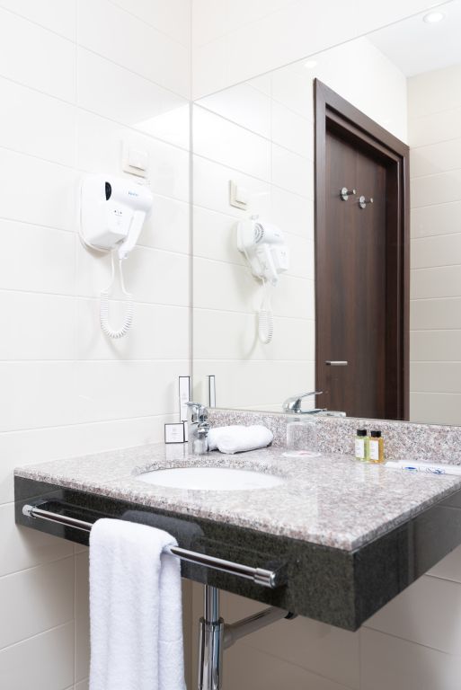 Уютный номер с дизайнерским ремонтом, удобной мебелью, которая позволит расслабиться и насладиться отдыхом. В номере есть всё необходимое для комфортного проживания: удобная двуспальная кровать с ортопедическим матрасом, либо две раздельные, односпальные кровати, телевизор, холодильник, кондиционер, шкаф, сейф, стол, 2 стула, чайник с чайными принадлежностями и тапочки. В ванной большое зеркало, фен и гигиенические принадлежности.