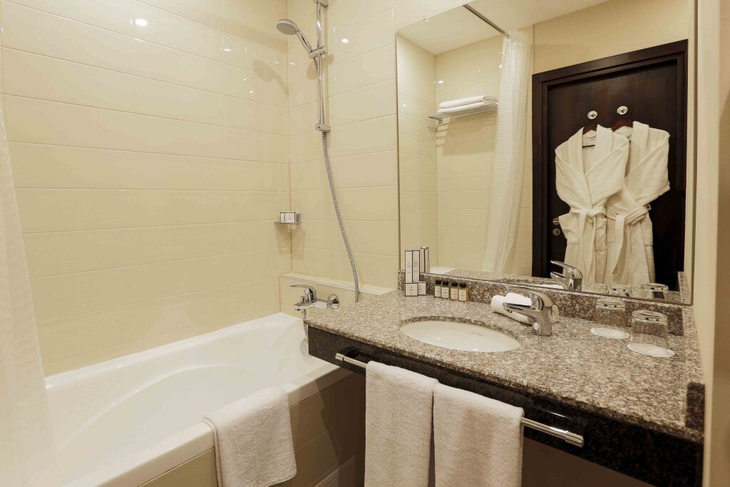 Оборудованный особым образом номер, предназначенный для размещения людей с ограниченными возможностями передвижения. Две кровати с ортопедическим матрасом, с возможностью объединения в одну большую кровать. Мини-бар, кофейные и чайные принадлежности. Фен, халаты, тапочки и косметический набор для каждого гостя. Индивидуальный сейф. Бесплатный вайфай.