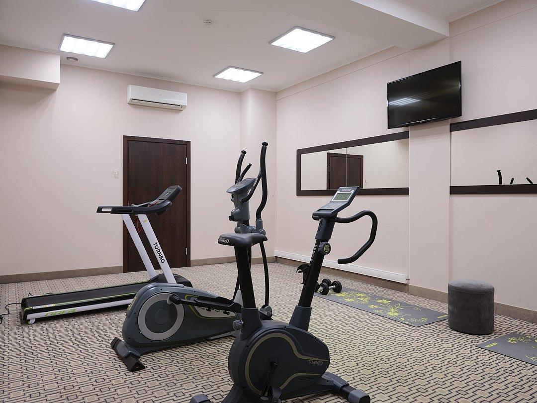 Многофункциональный спортзал оснащен беговой дорожкой, эллипсоидом и велотренажером. В уютном фитнес-уголке найдется место для любителей йоги и силовых упражнений, так что все посетители могут наслаждаться занятиями по своим предпочтениям. И самое лучшее — спортзал работает круглосуточно, чтобы удовлетворить потребности самых занятых людей в удобное для них время.