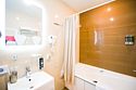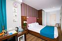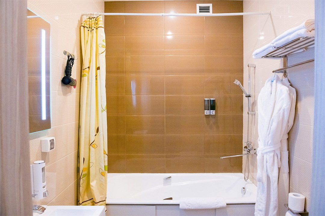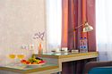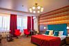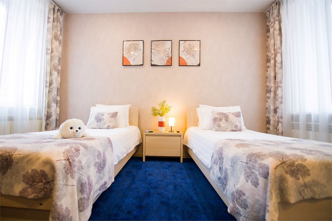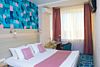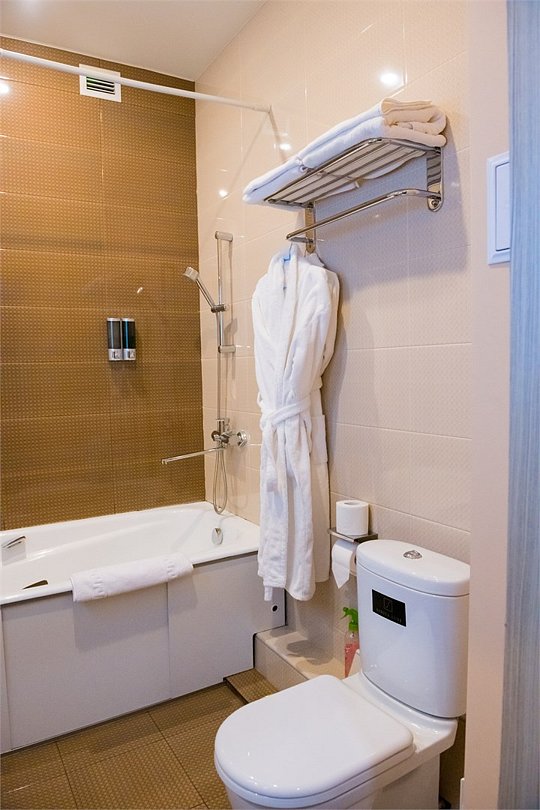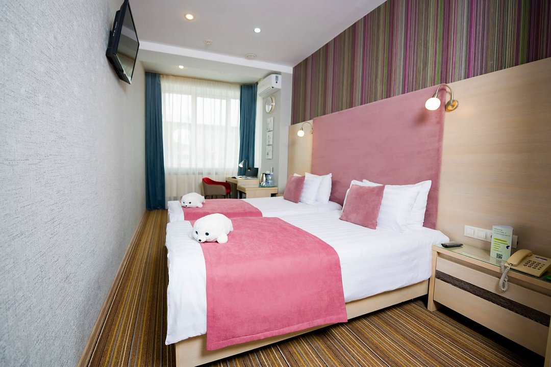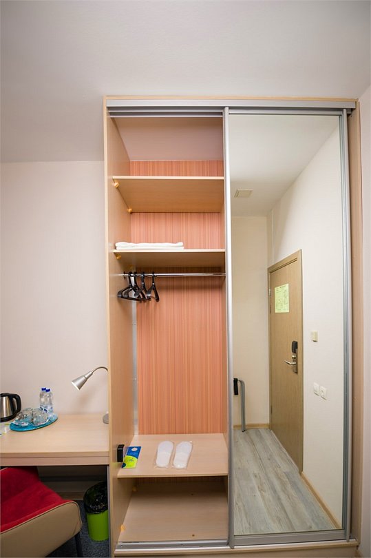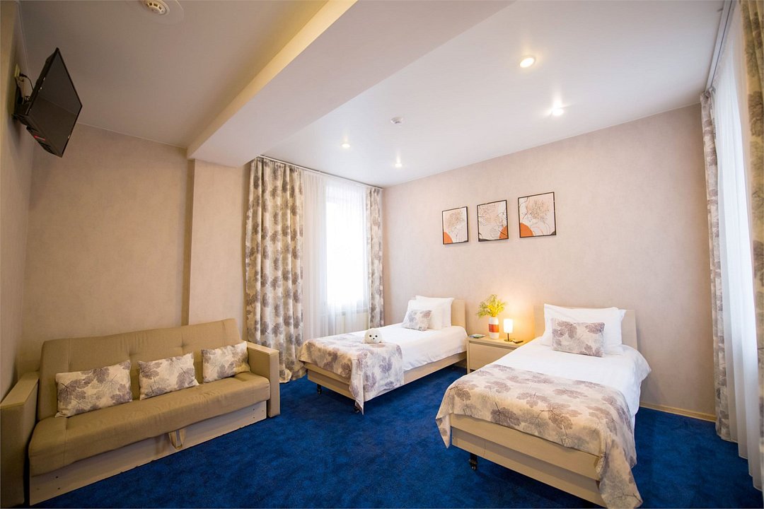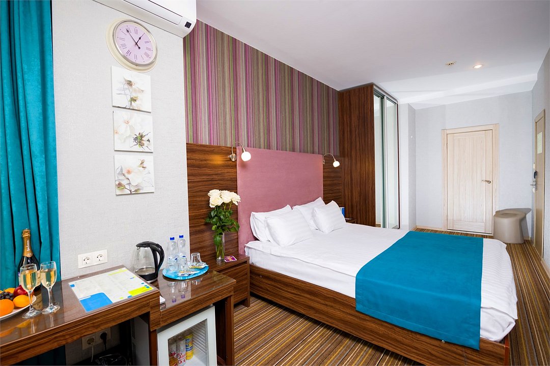 Номер категории "Комфорт" 22 кв.м. с просторной ванной комнатой. В номере присутствует самое необходимое для ночевки в отеле. Удобная мебель, двуспальная кровать, которую при желании можно раздвинуть на две односпальные кровати. Письменный стол, прикроватные тумбочки, шкаф, полка для багажа, пуф, стул, ТВ, телефон, холодильник, мини бар (за отдельную плату), сейф, бесплатный WiFi . Ванна, раковина, унитаз, зеркало, полотенца, фен, предметы индивидуального пользования, халат, тапочки. Чайник и чайные принадлежности, кофе, чай, бутилированная вода.Услуги и удобства