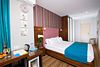 Современный элегантно меблированный светлый номер, оформленный в теплых тонах с выразительным декором и удобной дизайнерской мебелью, с видом на город. В номере профессиональные, гостиничные кровати. По желанию гостя трансформируются в одну двуспальную или две односпальные кровати.Услуги и удобства