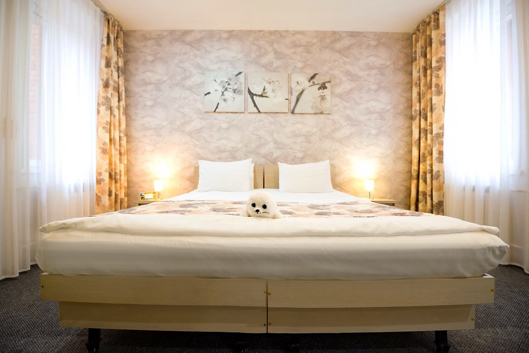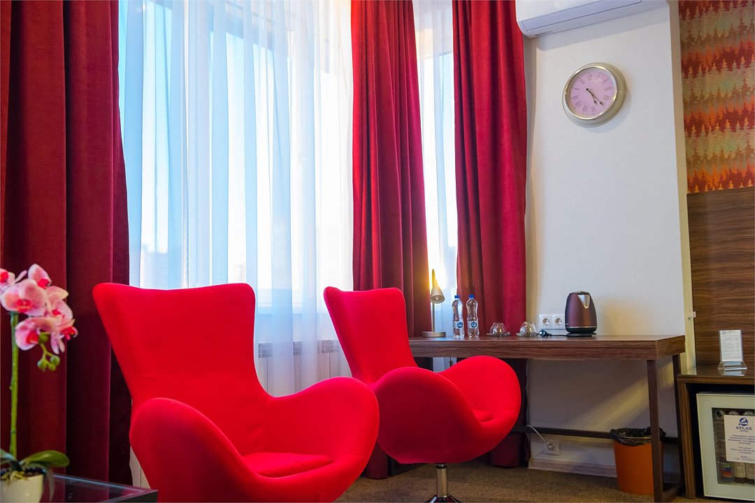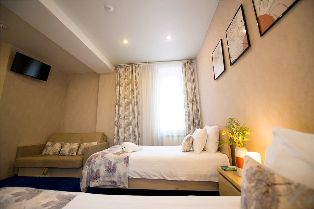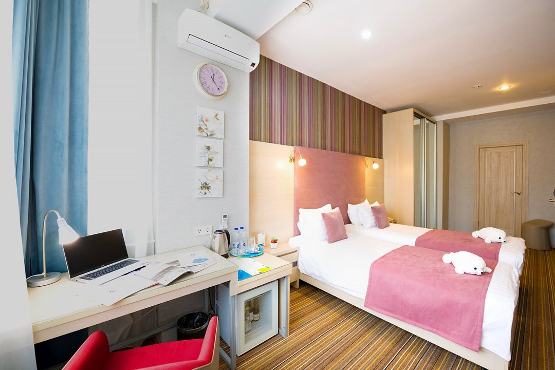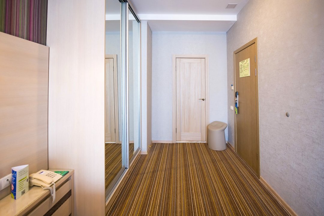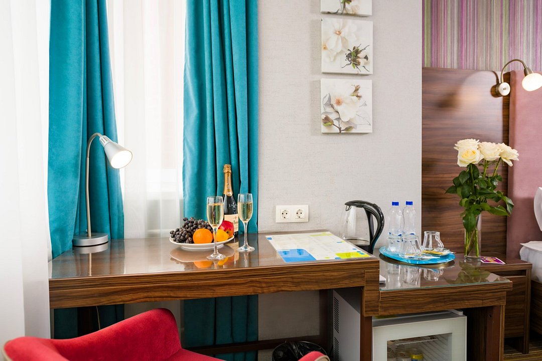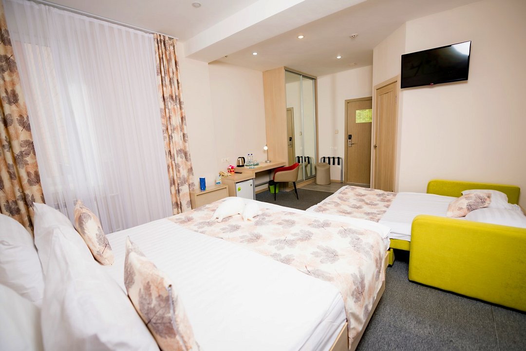 Отель разместился в пятиэтажном здании, расположенном в зеленом спальном квартале города. Небольшой жилой фонд включает в себя 28 номеров нескольких категорий комфорта. В номерах яркий стильный интерьер, есть собственный санузел, душ, электрочайник, телевизор-ЖК, большие окна, которые приносят в комнаты много света.