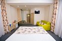 Номер категории Классик (для размещения от 1го до 5ти человек) идеальный вариант для семейного размещения. Номер площадью 22 кв.м. с собственной ванной комнатой. Оснащение: двуспальная кровать ( или две раздельные) и раскладной диван, душевая, раковина, унитаз, журнальный столик, зеркало, зеркало, стул и пуф, полотенца, ТВ, шкаф, фен, xайник и чайные принадлежности, телефон, предметы индивидуального пользования, халат по запросу, тапочки, мини бар (за отдельную плату), полка для багажа, бесплатный WiFi, односпальная кровать (дополнительное спальное место) и диван раскладной (дополнительные спальные места).Услуги и удобства