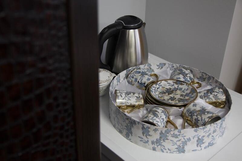 В номерах есть: плоский телевизор, письменный стол, стул, письменные принадлежности (по запросу), шкаф для одежды, тумба для обуви, стационарный телефон, пакет для стирки белья в отеле, фен, водонагреватель (на случай отключения горячей воды), электрический чайник, чайная станция, одноразовые тапочки, гигиенические принадлежности для душа (зубной набор, мыло, гель, шампунь, шапочка),полотенце для ног, набор полотенец, свежее постельное белье, вешалки для одежды, губка для обуви, швейный набор, ложка для обуви, тапочки одноразовые, зарядка для любого телефона (по запросу), обогреватель (по запросу), посуда (по запросу), телевизор, WI-FI, прикроватные тумбы, прикроватные светильники (по запросу), в некоторых номерах есть мини-холодильники (№8 (стандарт 2 этаж), №7 (стандарт 2 этаж), №10 (семейный 2 этаж), №12 (семейный 2 этаж),№11 (семейный с кухней 2 этаж),№18 (семейный с кухней 3 этаж), кондиционеры и даже диваны и кресла (№12 (семейный 2 этаж), №19 (семейный 3 этаж)).