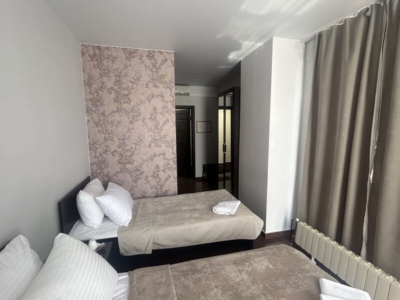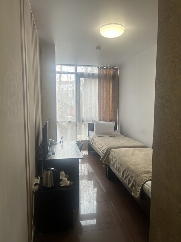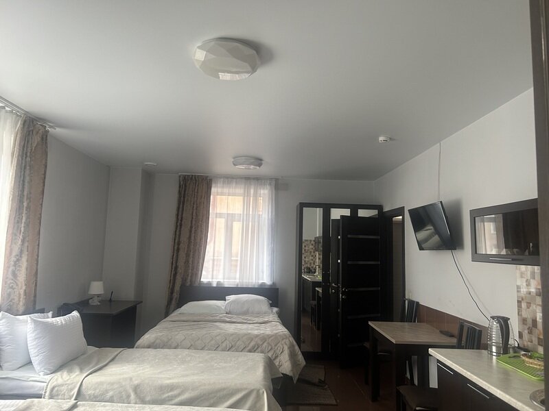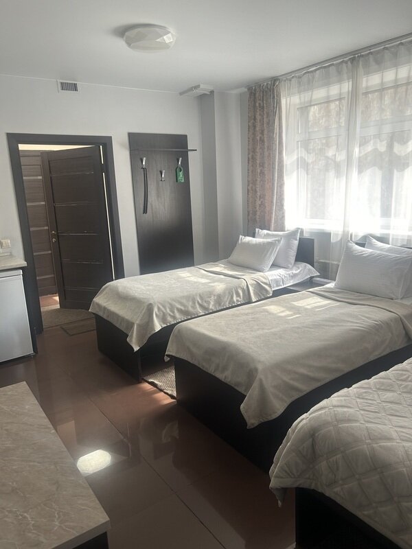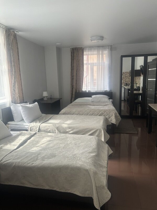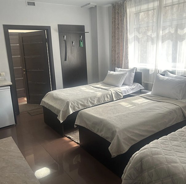 Короткий отпуск с друзьямиВсем рекомендую данный отель.Проживали втроём в семейном номере с кухней. Всё очень понравилось. Чисто, уютно, бельё приятное, постель удобная, подушки отличные. Продумано всё до мелочей, включая ранний заезд и поздний выезд. Бронировала номер по телефону, в апреле. При этом не взяли предоплату, что тоже приятно. Расположение отеля отличное. Недалеко ТЦ, столовые. На ресепшн имеется СВЧ, и можно бесплатно и неограниченно попить кофе из кофемашины. Мы готовили в номере. Посуда необходимая имеется. Нужен был острый нож, попросили, нам дали. Спасибо персоналу отеля. Внимательные, неравнодушные, отзывчивые. Рекомендую всем к проживанию.