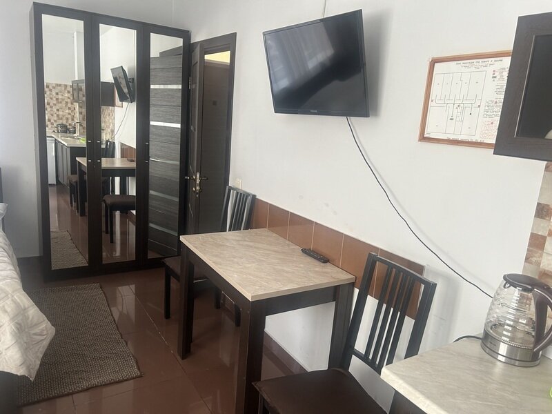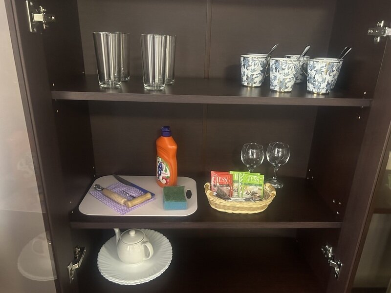 НедостаткиЧайник работал так себе. Не было жидкого мыла. Уборка оставляет желать лучшего. Мебель местами старая, обновить бы. Сейф найти не смогли. Дуло с балкона.