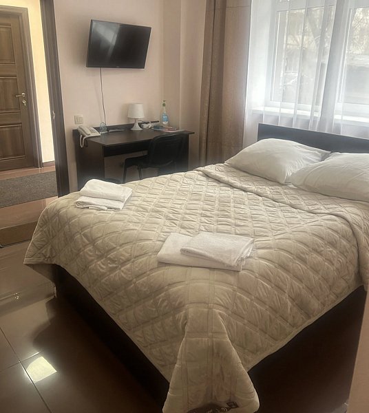 В Гостевом доме чистые и уютные номера трех категорий: «СТАНДАРТ» (одноместное или двухместное размещение на 2 и 3 этажах), «СЕМЕЙНЫЙ» (одноместное, двухместное, трехместное или четырехместное размещение на 3х этажах) и «СЕМЕЙНЫЙ С КУХНЕЙ» (одноместное, двухместное, трехместное или четырехместное размещение на 2 и 3 этажах). На 1 этаже есть номер для людей с ограниченными возможностями (№4 семейный номер, 2 двуспальные кровати).