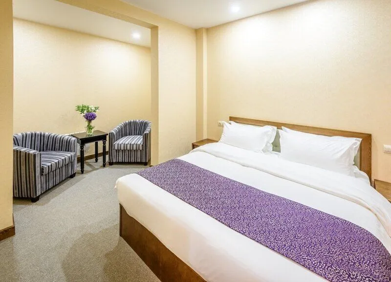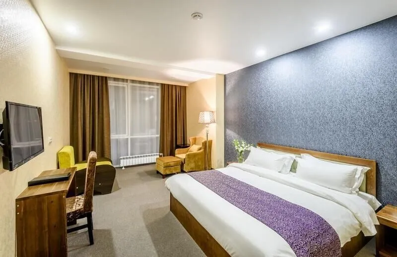 телевизор, кабельное телевидение, Wi-Fi, телефон, кондиционер, фен, электронные замки, санузел, банные принадлежности, банные полотенца, тапочки, косметические средства, две односпальные или большая двуспальная кровать, стулья, шкаф для одежды, письменный стол, ковер, чайник, косметическое зеркало, ковровое покрытие, отопление, китайский канал, вид во двор, номер для некурящих, чайная станция, уборка номера, услуги прачечной (платно), бутилированная вода, шапочка для душа, можно с питомцами, тропический душВ гостиничном номере