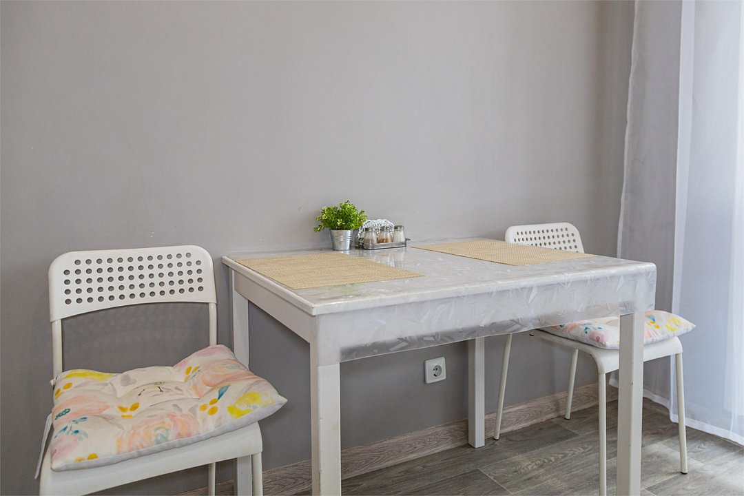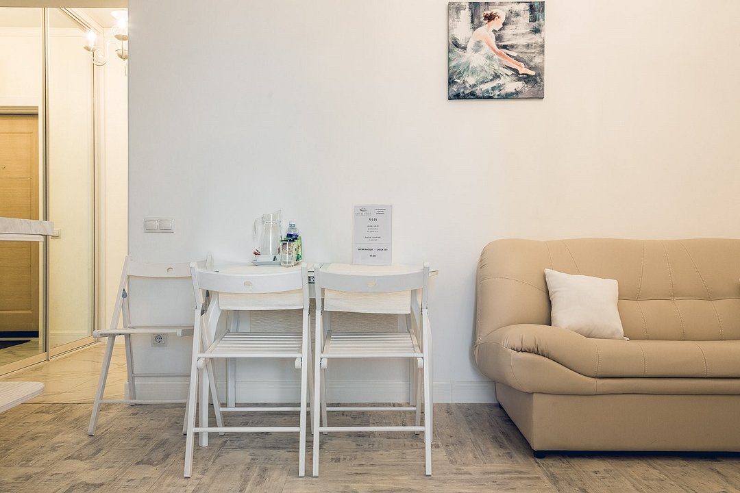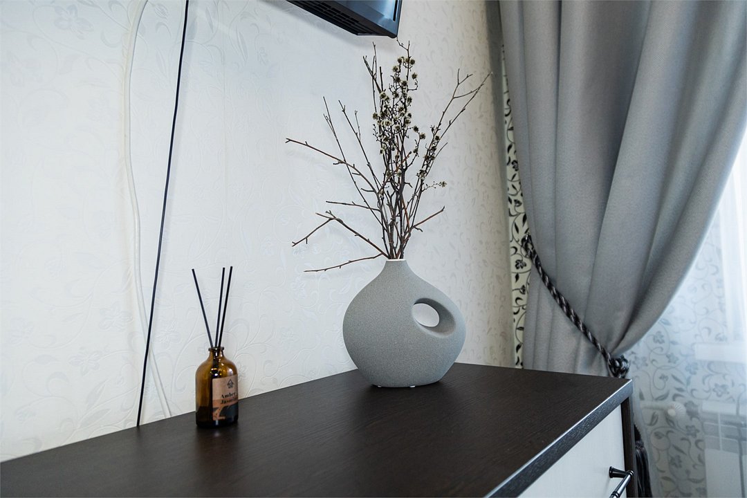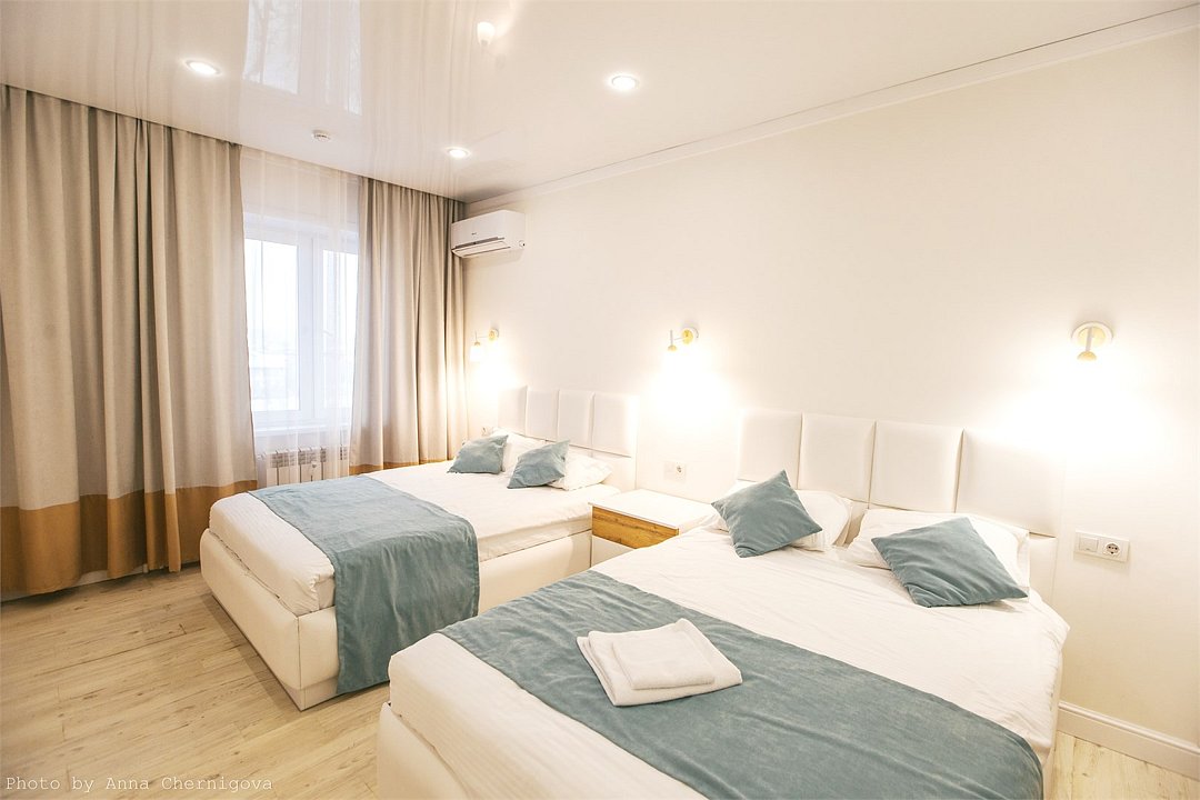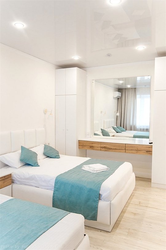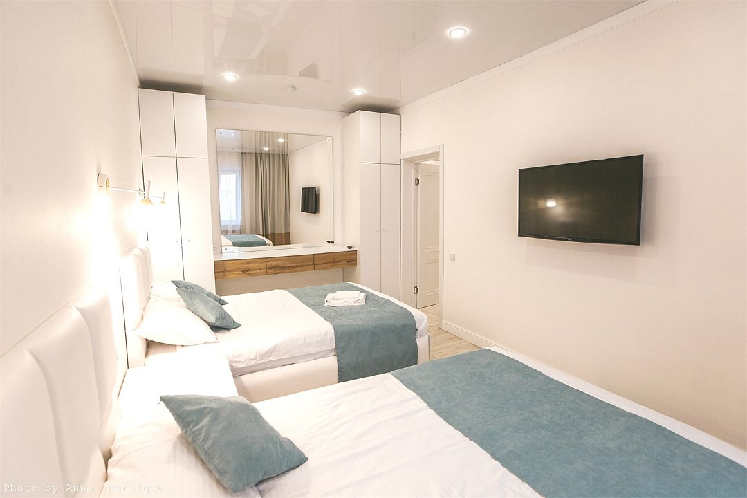 Апартаменты №134, 13 этаж (Comfort, двухкомнатный, Twin). Уютные апартаменты отеля, оформленные в нежном белом стиле, сочетают в себе современную функциональность и оригинальный интерьер. Светлая гостиная, две спальни с большими кроватями и кухней идеально подходят для семейной пары и деловых людей. Размер апартаментов: 48 м2. Просторная ванная комната оборудована всеми необходимыми принадлежностями. Наши нежные банные полотенца окутают Вас уютом и домашним теплом. Беспроводной интернет, сейф, холодильник, кофеварка. Пребывание в наших апартаментах, сделает Ваш отдых незабываемым. В числе удобств номера: - кондиционер; - 3 телевизора с плоским экраном; - мини-холодильник; - стиральная машина; - кофемашина; - чайник; - утюг; - посуда; - кухонные принадлежности; - ванная комната с душевой кабиной с феном; - нежнейшие полотенца; - ароматные туалетные принадлежности; - свежее постельное белье; - просторная лоджия с великолепным видом Рядом расположено множество остановок общественного транспорта, супермаркет, кинотеатр с 3D MAX, большое количество кафе и рестораны. В 500 метрах находится Диагностический центр. Стойка регистрации работает круглосуточно. Все апартаменты располагаются в ЖК "Баргузин" с 7 по 13 этаж.Услуги и удобства