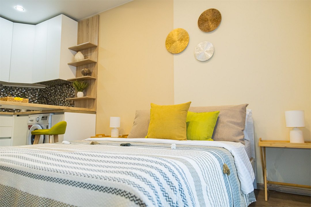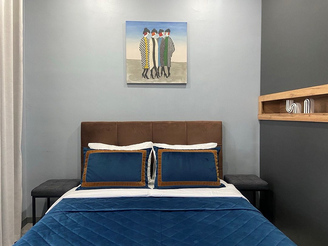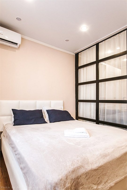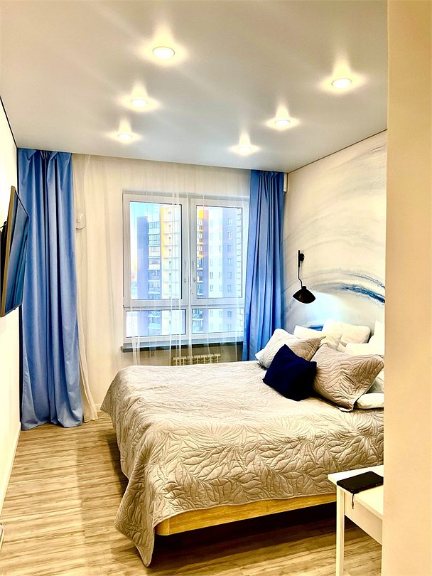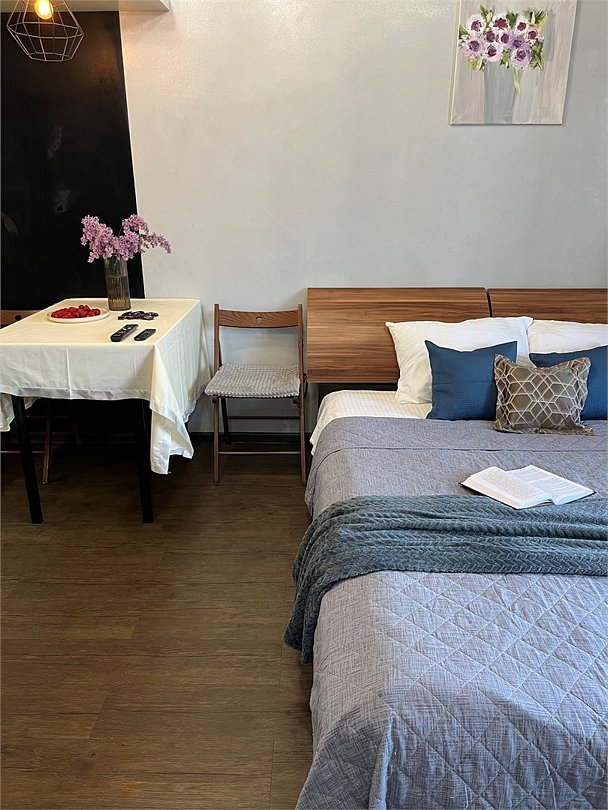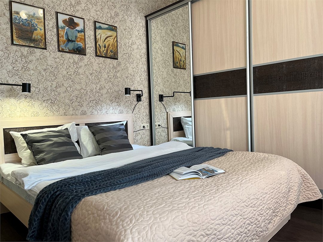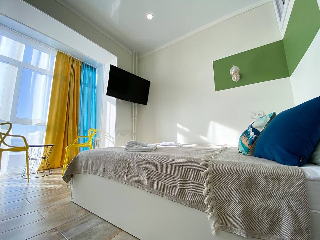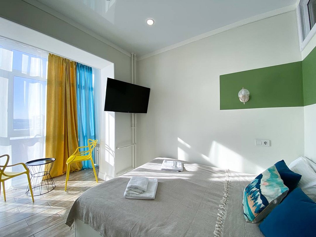 телевизор, Wi-Fi, холодильник, фен, утюг, двуспальная кровать, вид на город, можно с питомцамиВ апартаментах