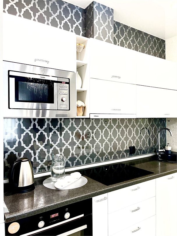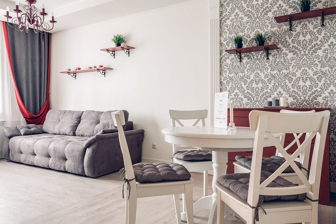 телевизор, Wi-Fi, интернет, светильник, фен, плита для приготовления пищи, микроволновая печь, утюг, ванная комната, ванна или душевая кабина, санузел, банные полотенца, тапочки, балкон, кровать «Queen size», гладильная доска, стулья, шкаф для одежды, обеденный стол, зеркало, комод, чайный набор, набор посуды, стиральная машина, чайник, унитаз, обеденная зона, отопление, плиточное покрытие, кухонная посуда, стаканы, кухонная утварь, столовые приборы, туалетные средства, туалет, раскладной диван, мини-холодильник, мини-кухня, шкаф-купе, можно с питомцамиВ апартаментах
