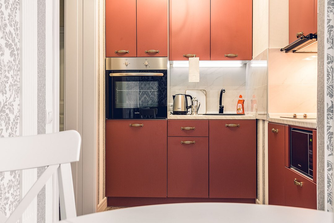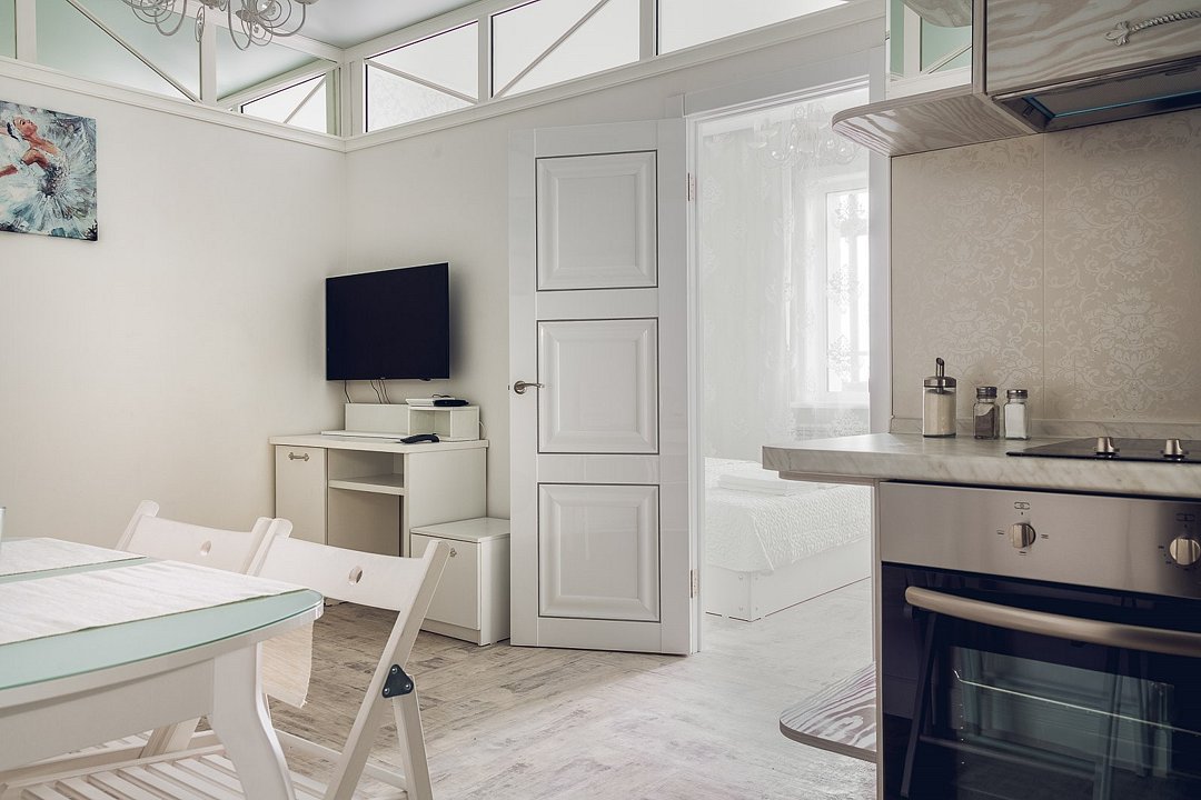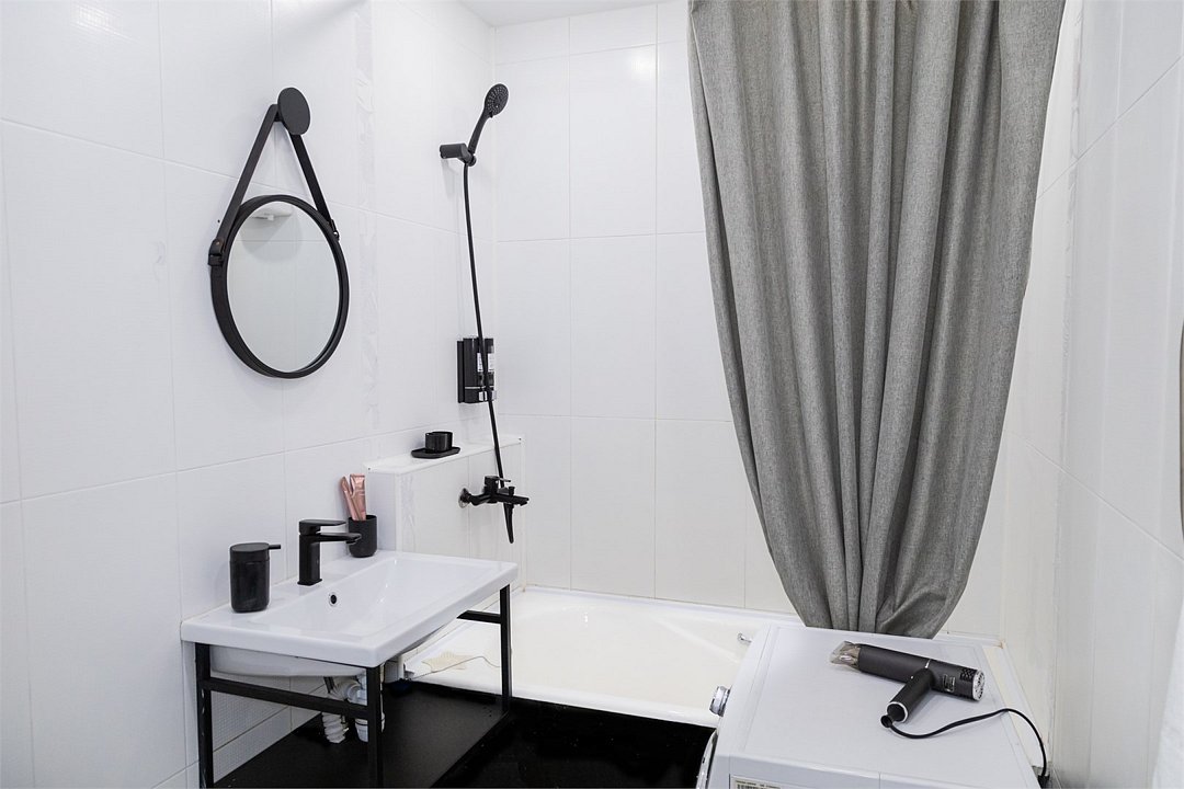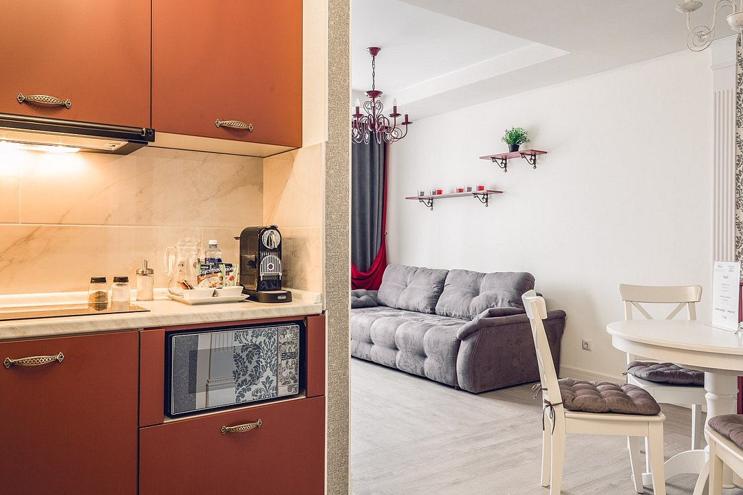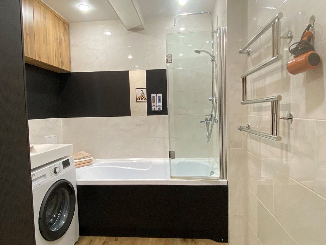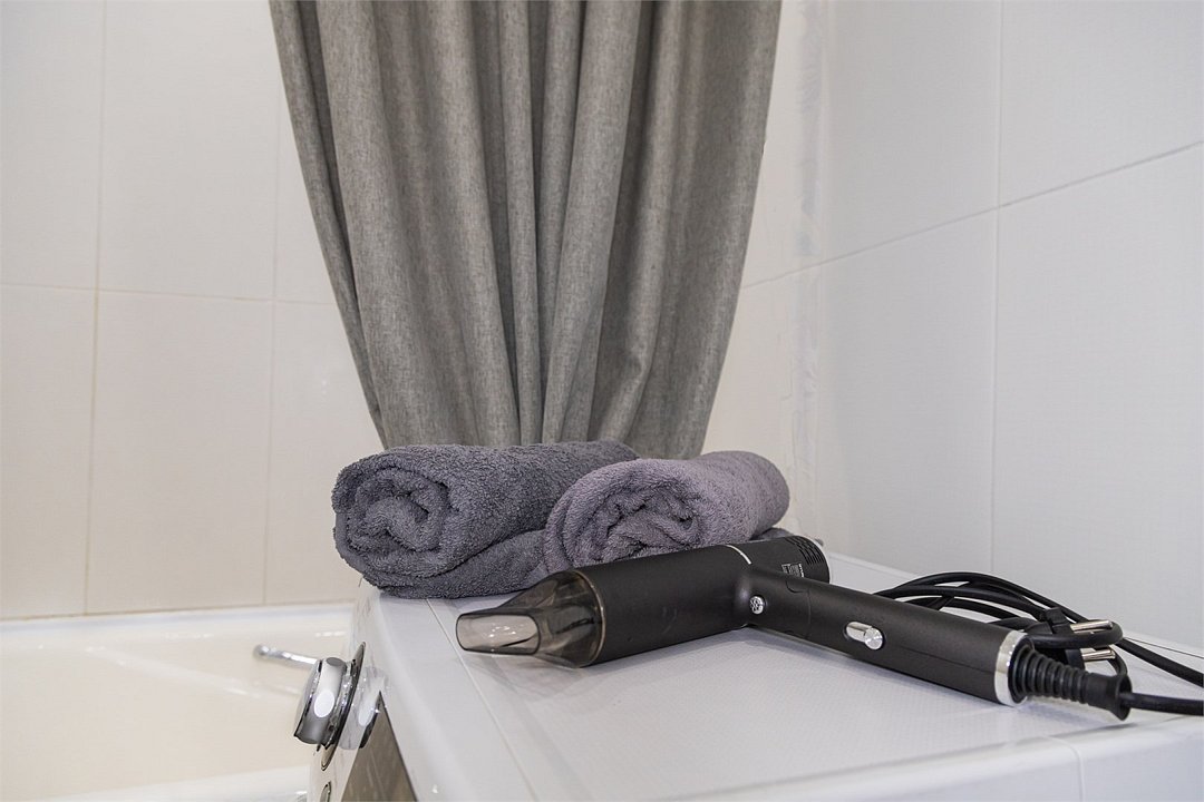 телевизор, Wi-Fi, холодильник, фен, плита для приготовления пищи, микроволновая печь, утюг, ванная комната, душевая кабина, санузел, банные полотенца, тапочки, балкон, кровать «Queen size», гладильная доска, стулья, шкаф для одежды, зеркало, кухня, чайный набор, набор посуды, стиральная машина, чайник, обеденная зона, отопление, кухонная посуда, стаканы, столовые приборы, стол, тумба, туалетные средства, диван-кровать, раскладной диван, шкаф-купе, можно с питомцамиВ апартаментах