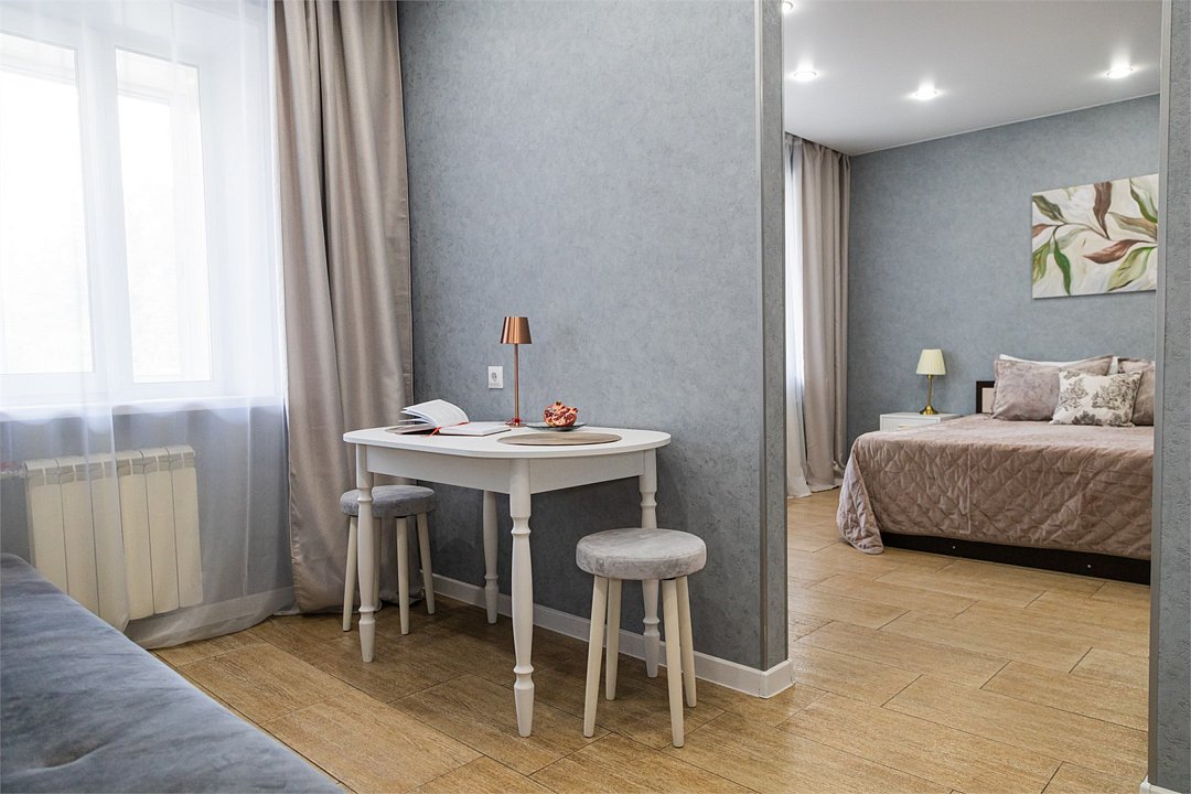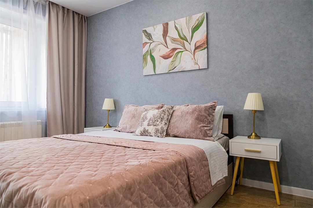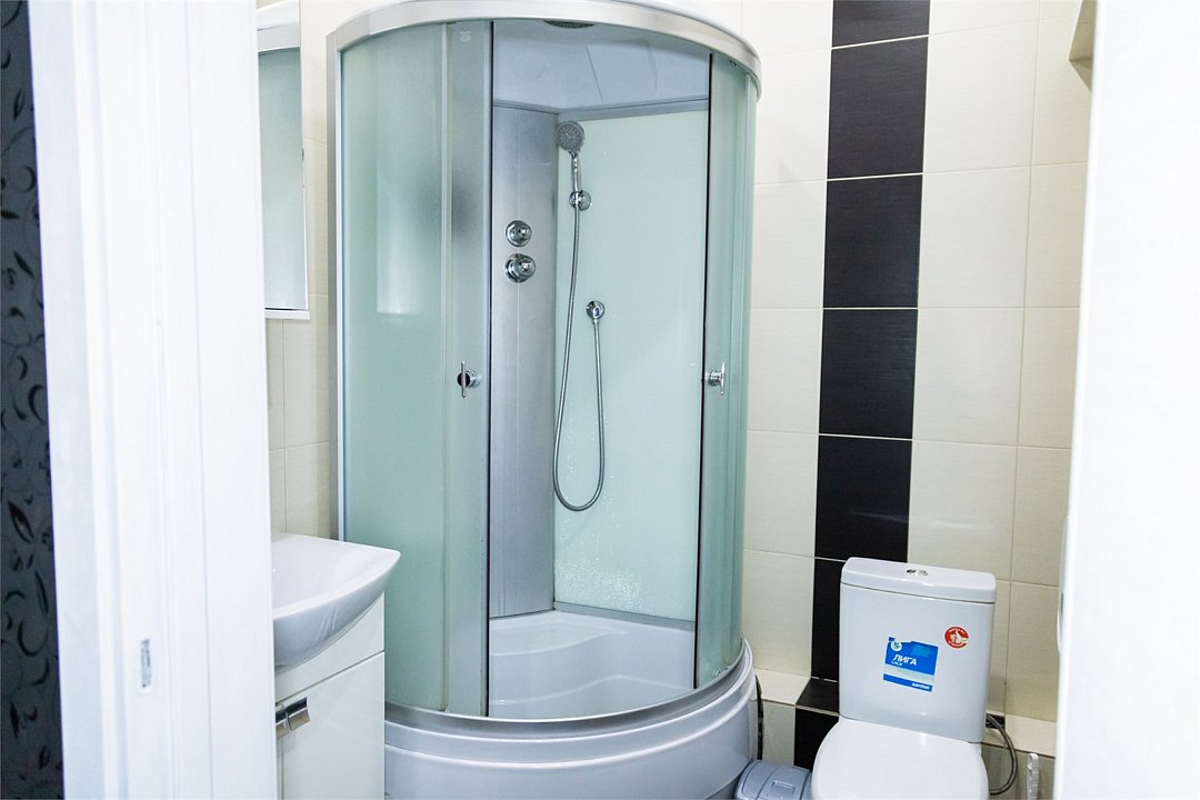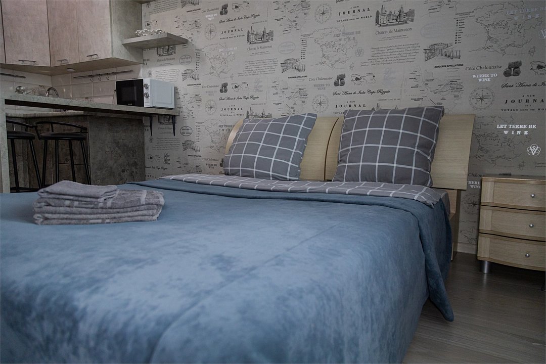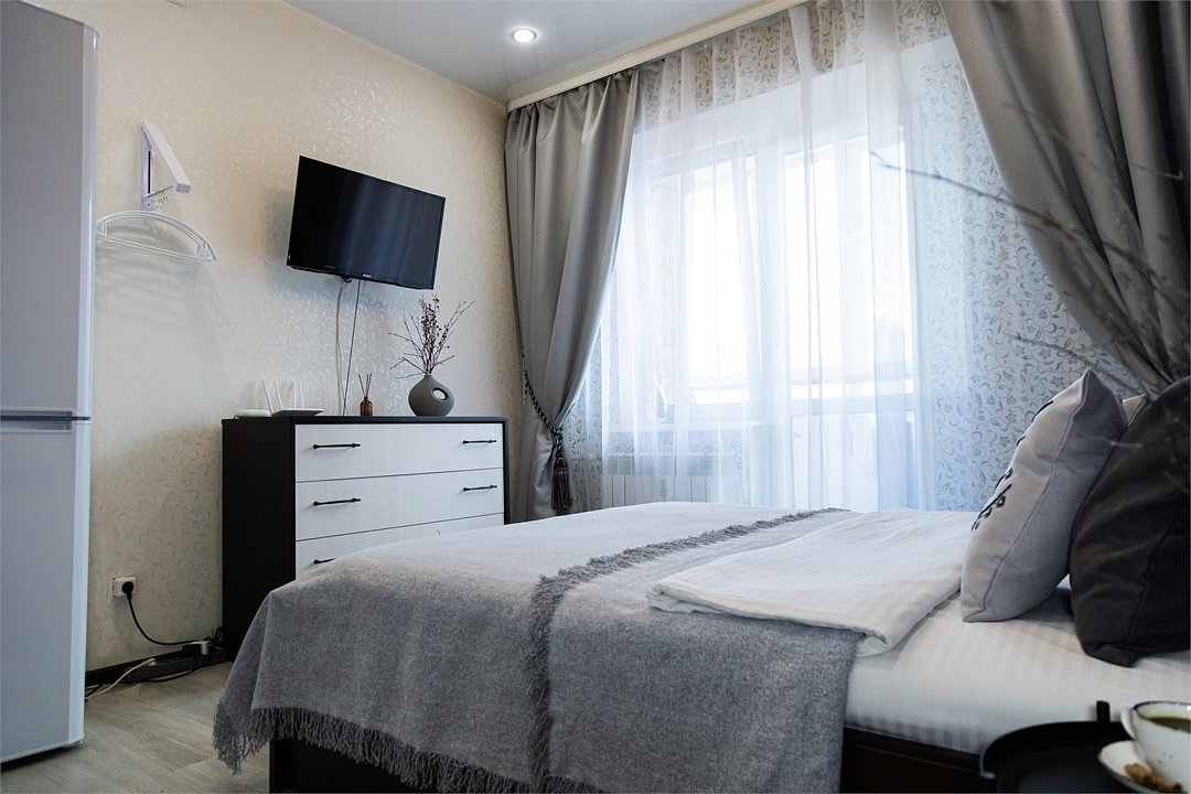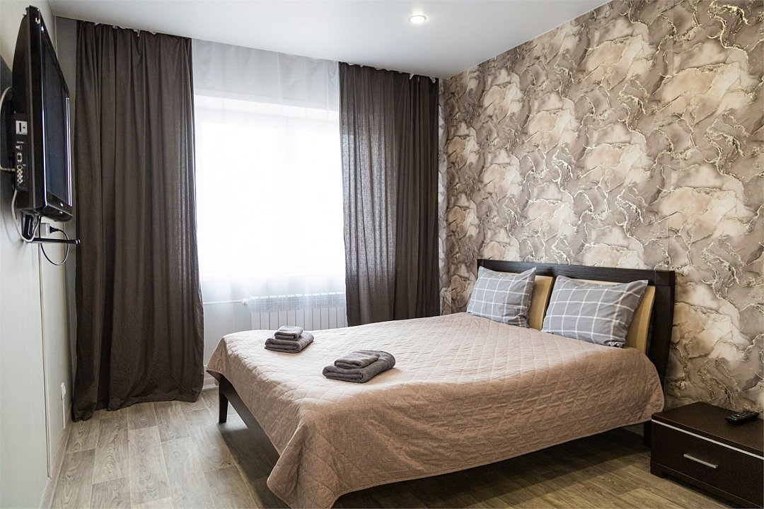 Апартаменты класса Комфорт. В данных апартаментах имеется 2 комнаты - большая гостиная зона, с большим и удобным мягким диваном , объединенная с мини-кухней; и уютная спальня с большой кроватью. В апартаментах выполненных с оригинальным дизайнерским интерьером вы сможете ощутить полный комфорт, простор и уют. Размер апартаментов: 44 м2. Просторная ванная комната оборудована всеми необходимыми принадлежностями. Наши нежные банные полотенца окутают Вас уютом и домашним теплом. Беспроводной интернет, сейф, холодильник, кофеварка. Пребывание в наших апартаментах, сделает Ваш отдых незабываемым. В числе удобств номера: - кондиционер; - 1 либо 2 телевизора с плоским экраном; - мини-холодильник; - стиральная машина; - кофемашина; - чайник; - утюг; - посуда; - кухонные принадлежности; - ванная комната с душевой кабиной или ванной; - нежнейшие полотенца; - ароматные туалетные принадлежности; - свежее постельное белье; - просторная лоджия с великолепным видом Рядом расположено множество остановок общественного транспорта, супермаркет, кинотеатр с 3D MAX, большое количество кафе и рестораны. В 500 метрах находится Диагностический центр. Стойка регистрации работает круглосуточно. Все апартаменты располагаются в ЖК "Баргузин" с 7 по 13 этаж.Услуги и удобства