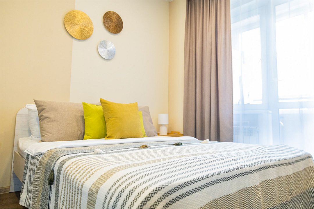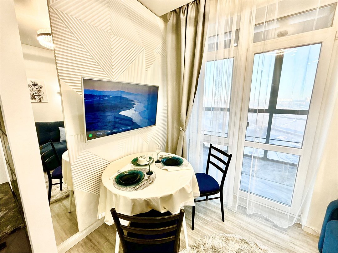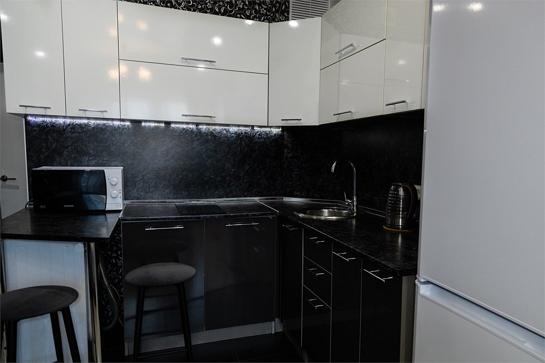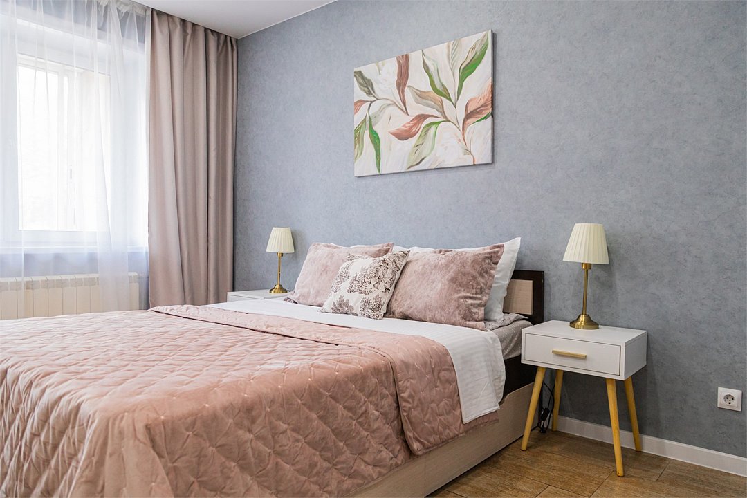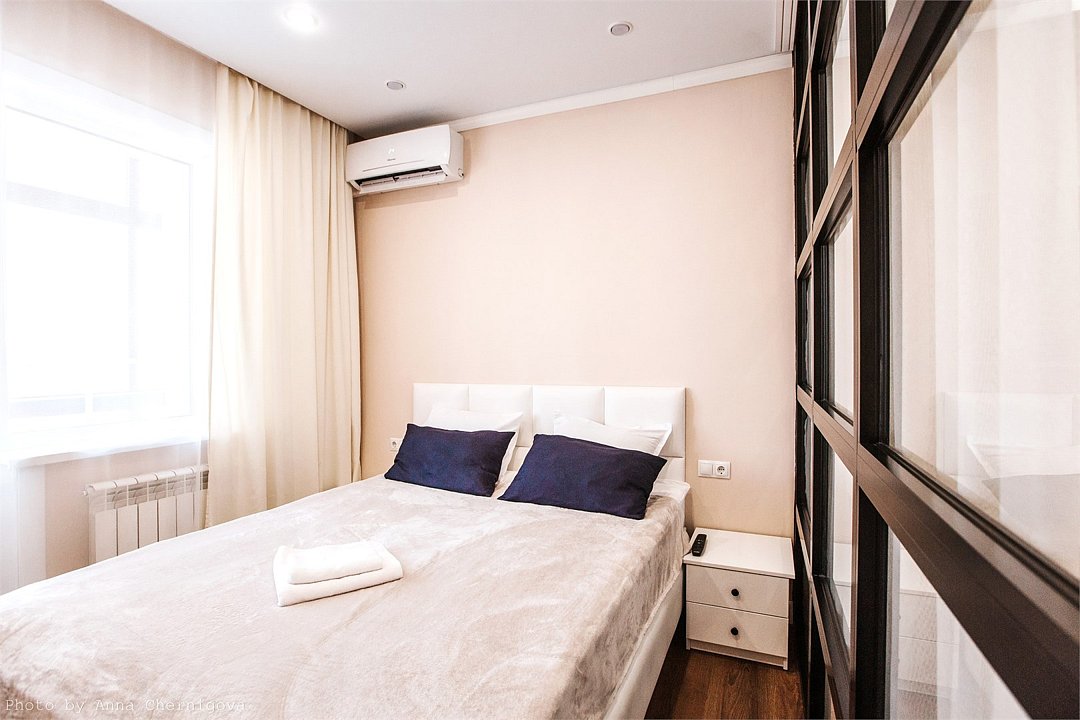 Апартаменты класса Комфорт. В данных апартаментах имеется 2 комнаты - большая гостиная зона, с большим и удобным мягким диваном , объединенная с мини-кухней; и уютная спальня с большой кроватью. В апартаментах выполненных с оригинальным дизайнерским интерьером вы сможете ощутить полный комфорт, простор и уют. Размер апартаментов: 44 м2. Просторная ванная комната оборудована всеми необходимыми принадлежностями. Наши нежные банные полотенца окутают Вас уютом и домашним теплом. Беспроводной интернет, сейф, холодильник, кофеварка. Пребывание в наших апартаментах, сделает Ваш отдых незабываемым. В числе удобств номера: - кондиционер; - 1 либо 2 телевизора с плоским экраном; - мини-холодильник; - стиральная машина; - кофемашина; - чайник; - утюг; - посуда; - кухонные принадлежности; - ванная комната с душевой кабиной или ванной; - нежнейшие полотенца; - ароматные туалетные принадлежности; - свежее постельное белье; - просторная лоджия с великолепным видом Рядом расположено множество остановок общественного транспорта, супермаркет, кинотеатр с 3D MAX, большое количество кафе и рестораны. В 500 метрах находится Диагностический центр. Стойка регистрации работает круглосуточно. Все апартаменты располагаются в ЖК "Баргузин" с 7 по 13 этаж.Услуги и удобства