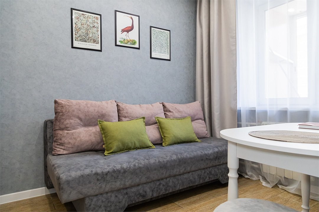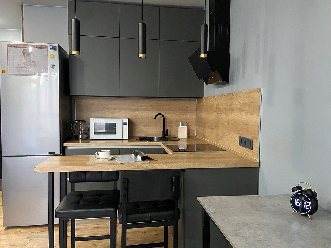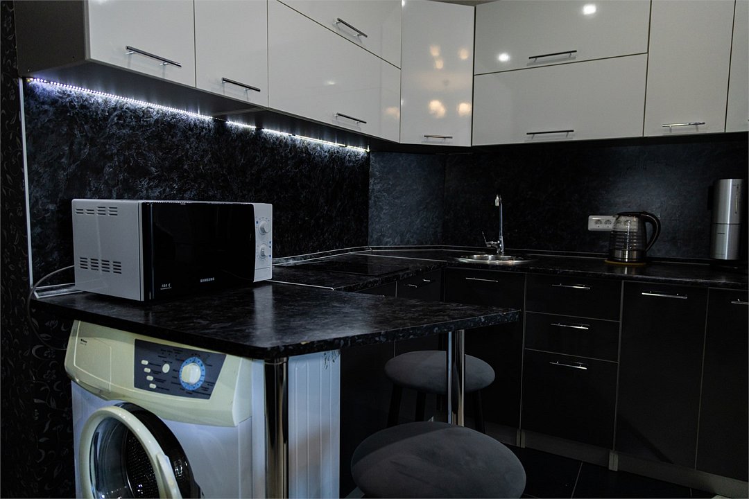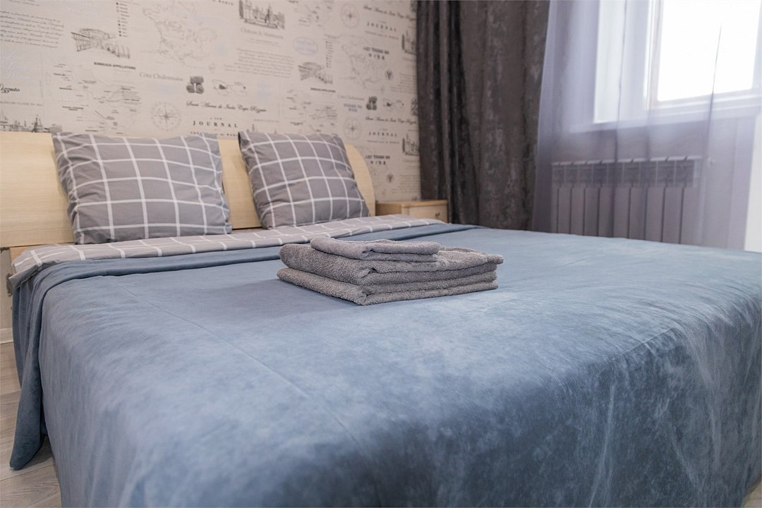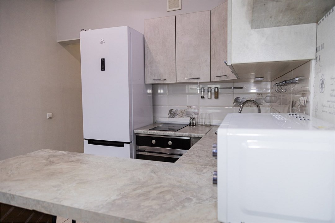 Апартаменты класса Стандарт. В апартаментах имеется большая кухня, и уютная спальня с кроватью и двуспальным диваном . Интерьер апартаментов выполнен в тонах, придающих комфорт и домашний уют. Размер апартаментов: 41 м2. Просторная ванная комната оборудована всеми необходимыми принадлежностями. Наши нежные банные полотенца окутают Вас уютом и домашним теплом. Беспроводной интернет, холодильник, утюг, чайник, фен. Пребывание в наших апартаментах, сделает Ваш отдых незабываемым. В числе удобств номера: - 1 телевизор с плоским экраном; - холодильник; - стиральная машина; - чайник; - утюг; - посуда; - кухонные принадлежности; - ванная комната с феном; - нежнейшие полотенца; - свежее постельное белье; Рядом расположено множество остановок общественного транспорта, супермаркет, кинотеатр с 3D MAX, большое количество кафе и рестораны. В 500 метрах находится Диагностический центр. Все апартаменты располагаются в ЖК "Баргузин" с 7 по 13 этаж.Услуги и удобства