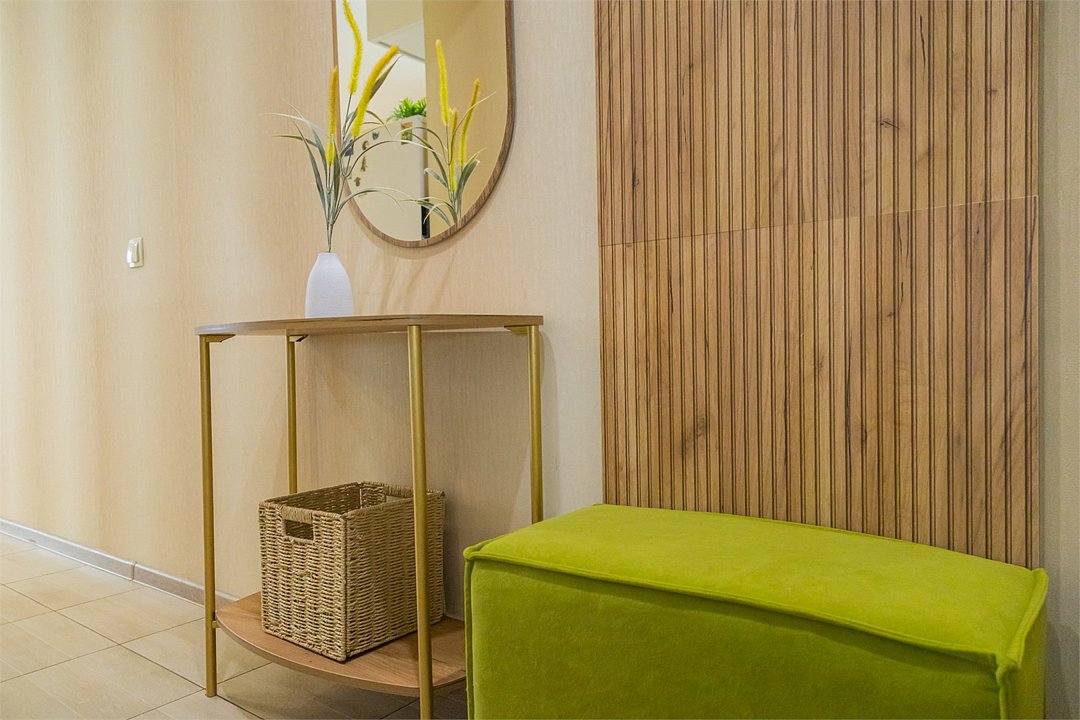 Апартаменты № 301, 11 этаж. Яркие зеленые нотки в дизайне придают ощущение первой весенней свежей зелени, а лучезарные желтые цвета напоминают я ярком теплом весеннем солнце. Большое панорамное окно вместо стены позволяет насладиться великолепным видом с 11 этажа на Ангару. Просторная ванная комната оборудована всеми необходимыми принадлежностями. Наши нежные банные полотенца окутают Вас уютом и домашним теплом. Беспроводной интернет, сейф, холодильник, кофеварка. Пребывание в наших апартаментах, сделает Ваш отдых незабываемым. В числе удобств номера: - кондиционер; - 3 телевизора с плоским экраном; - мини-холодильник; - стиральная машина; - кофемашина; - чайник; - утюг; - посуда; - кухонные принадлежности; - ванная комната с душевой кабиной с феном; - нежнейшие полотенца; - ароматные туалетные принадлежности; - свежее постельное белье; - просторная лоджия с великолепным видом Рядом расположено множество остановок общественного транспорта, супермаркет, кинотеатр с 3D MAX, большое количество кафе и рестораны. В 500 метрах находится Диагностический центр. Стойка регистрации работает круглосуточно. Все апартаменты располагаются в ЖК "Баргузин" с 7 по 13 этаж.Услуги и удобства