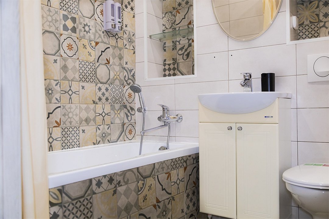 телевизор, холодильник, кондиционер, светильник, фен, электронные замки, микроволновая печь, утюг, санузел, тапочки, унитаз, туалетные средства, туалет, духовой шкаф, джакузи, мыло, можно с питомцамиВ квартире