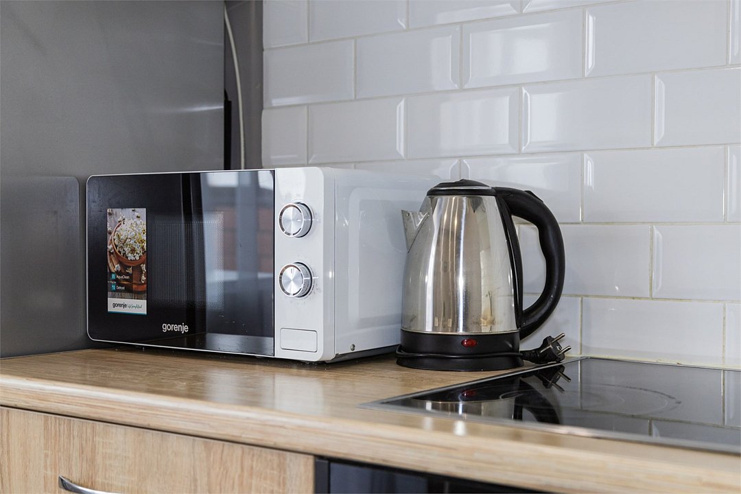 телевизор, холодильник, светильник, фен, плита для приготовления пищи, микроволновая печь, утюг, двуспальная кровать, можно с питомцамиВ квартире
