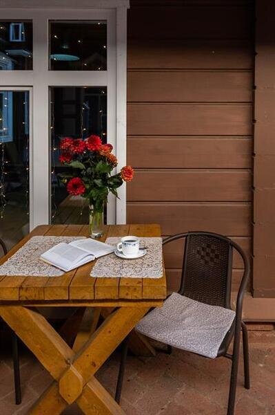 Небольшое кафе в деревянном стиле, где гости могут позавтракать, пообедать и поужинать. А также возможность поработать, почитать или просто провести вечер в уютной обстановке.