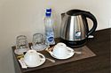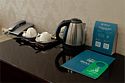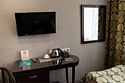 кабельное телевидение, Wi-Fi, телефон, настольные лампы, фен, утюг, банные принадлежности, халаты, банные полотенца, тапочки, кровать «King size», гипоаллергенное белье, кресла, тумбы, шкаф для одежды, вешалки, журнальный столик, зеркало, мини-бар, чайный набор, обслуживание номеров, чайник, раковина, питьевая вода, ковровое покрытие, душ, вид на город, кулер на этаже, стаканы, стол, туалетные средства, туалет, внутренний телефон, телевизор с плоским экраном, мини-холодильник, москитная сеткаВ номере