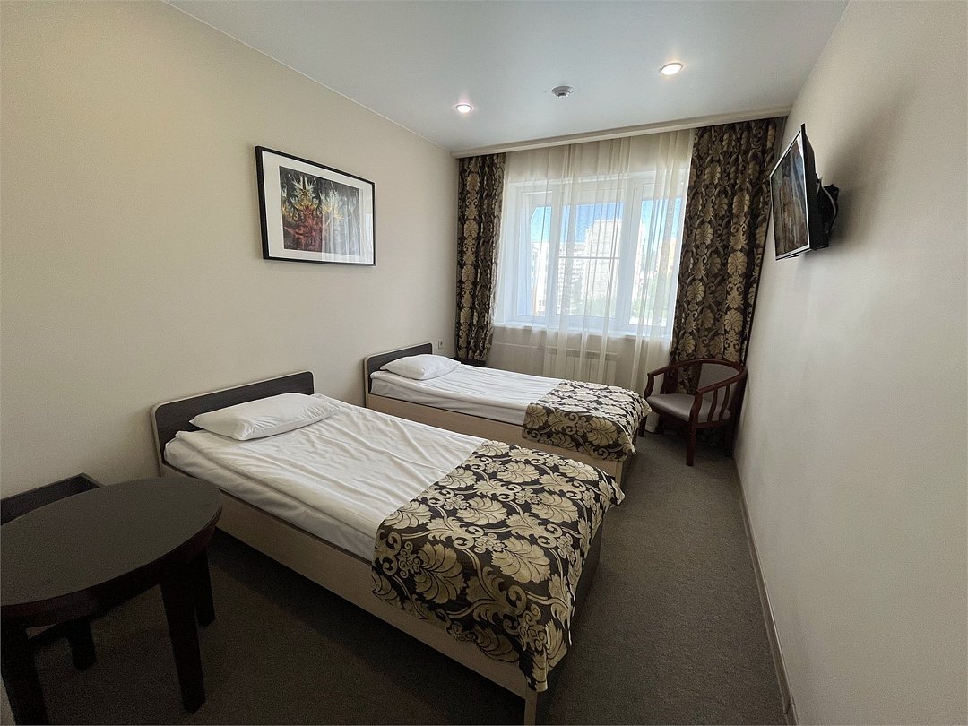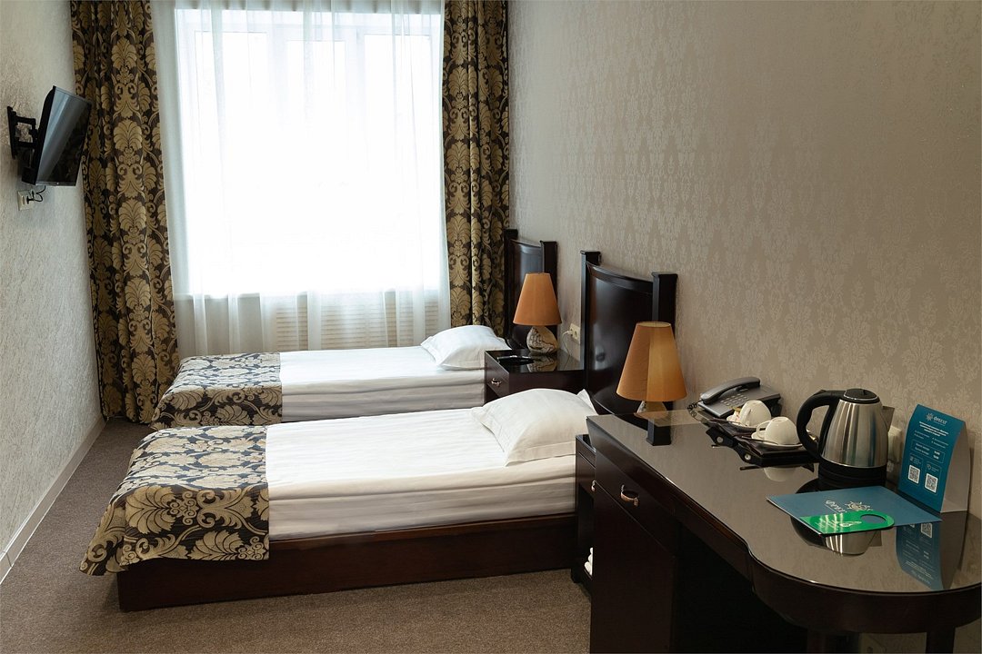 Отдыхайте и работайте в уютной атмосфере Стандартного номера с раздельными кроватями. Здесь есть все для Вашего комфорта: телевизор, телефон, высокоскоростной Интернет, мини-бар. Номер прекрасно подойдет для командировочных гостей. Подходит под одноместное и двухместное размещение. В номере 2 односпальные кровати. Заезд с 14:00, выезд в 12:00 Завтрак для Гостей Отеля проходит в ресторане с 8:00 до 11:00. Континентальный завтрак включает в себя кашу, круассан или оладушки с разнообразными начинками и добавками. Для тех Гостей, кто забронировал завтрак и не успевает подойти с 8:00 до 11:00 мы предлагаем забрать ланч-бокс. Для получения завтрака с собой обратитесь на стойку Reception с вечера до 20:00. Номера не адаптированы для мало мобильных групп, лифт отсутствует.Услуги и удобства