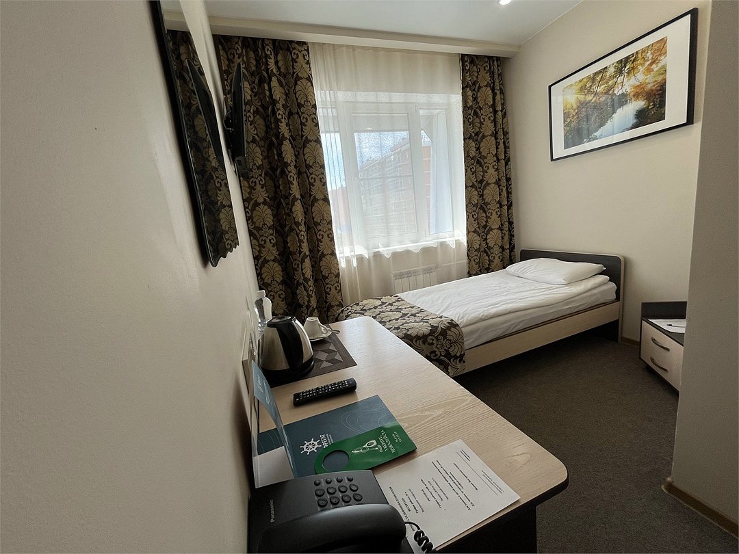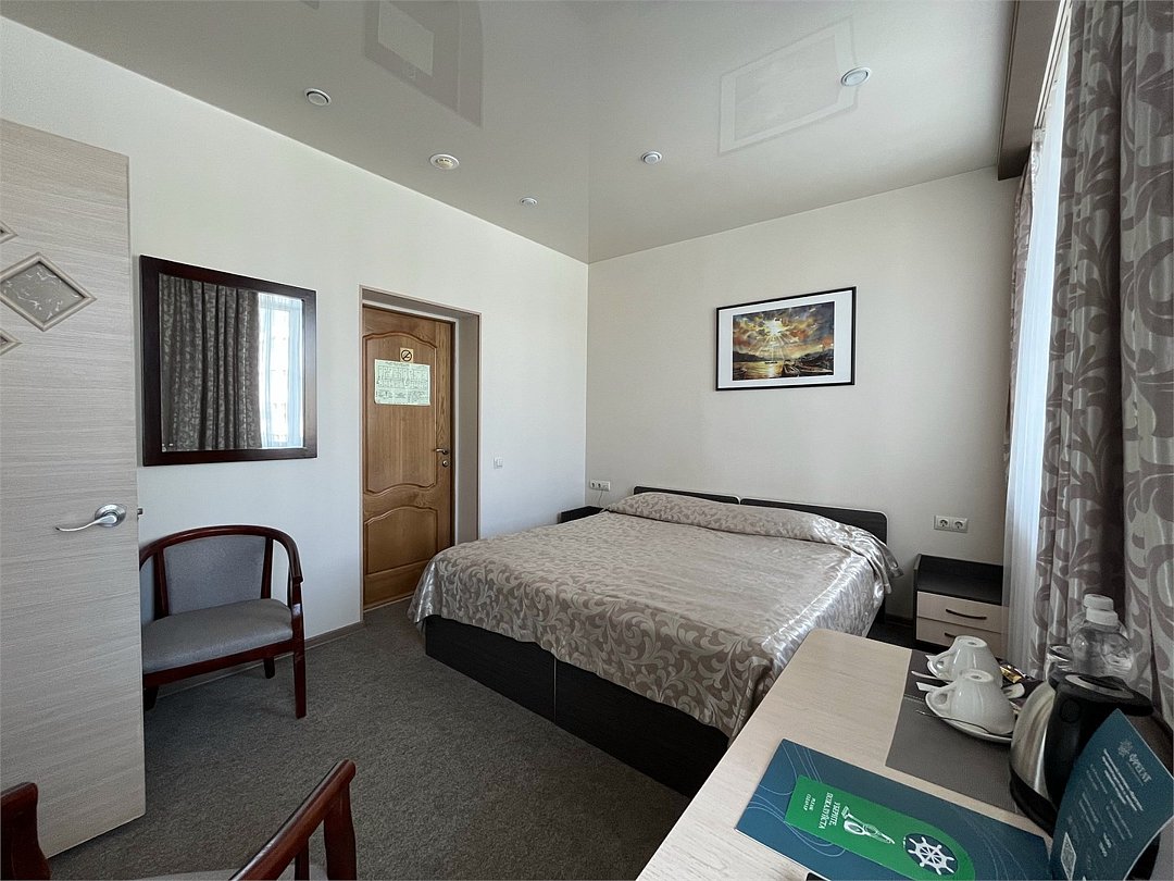 Номер категории Эконом одноместный с удобствами на этаже (в номере отсутствуют санузел и душевая комната). Общий санузел и душевая комната находятся на этаже. Номер оснащен необходимыми принадлежностями для размещения. Прекрасно подойдет для бюджетного отдыха, а также для гостей, кому необходимо отдохнуть в поездке между рейсами. Заезд с 14:00ч., выезд в 12:00ч. Завтрак для Гостей ГК "Фрегат" проходит в ресторане с 8:00ч. до 11:00ч. утра по местному времени. Континентальный завтрак включает в себя кашу, круассан или оладушки с разнообразными начинками и добавками. Для тех Гостей, кто не успевает позавтракать в ресторане с 8:00ч. до 11:00ч. мы предлагаем подготовить завтрак в формате ланч-бокс. Для заказа данной услуги обратитесь заранее на стойку Reception с вечера до 20:00ч.. Тапочки предоставляются за дополнительную плату В каждом номере есть окно. Номера не подходят для маломобильных групп населения. Лифт отсутствует.Услуги и удобства