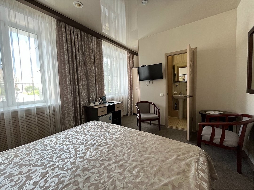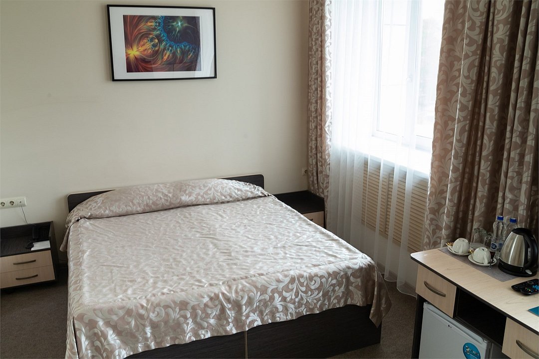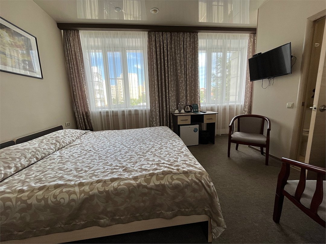 Стандартный двухместный номер оснащен всем необходимым для комфортного проживания с одноместным и двухместным размещением. В номере 1 двуспальная кровать, ванная комната с душевой. Заезд с 14:00, выезд в 12:00 Завтрак для Гостей Отеля проходит в ресторане с 8:00 до 11:00. Континентальный завтрак включает в себя кашу, круассан или оладушки с разнообразными начинками и добавками. Для тех Гостей, кто забронировал завтрак и не успевает подойти с 8:00 до 11:00 мы предлагаем забрать ланч-бокс. Для получения завтрака с собой обратитесь на стойку Reception с вечера до 20:00. Номера не адаптированы для мало мобильных групп населения. Лифт отсутствует.Услуги и удобства