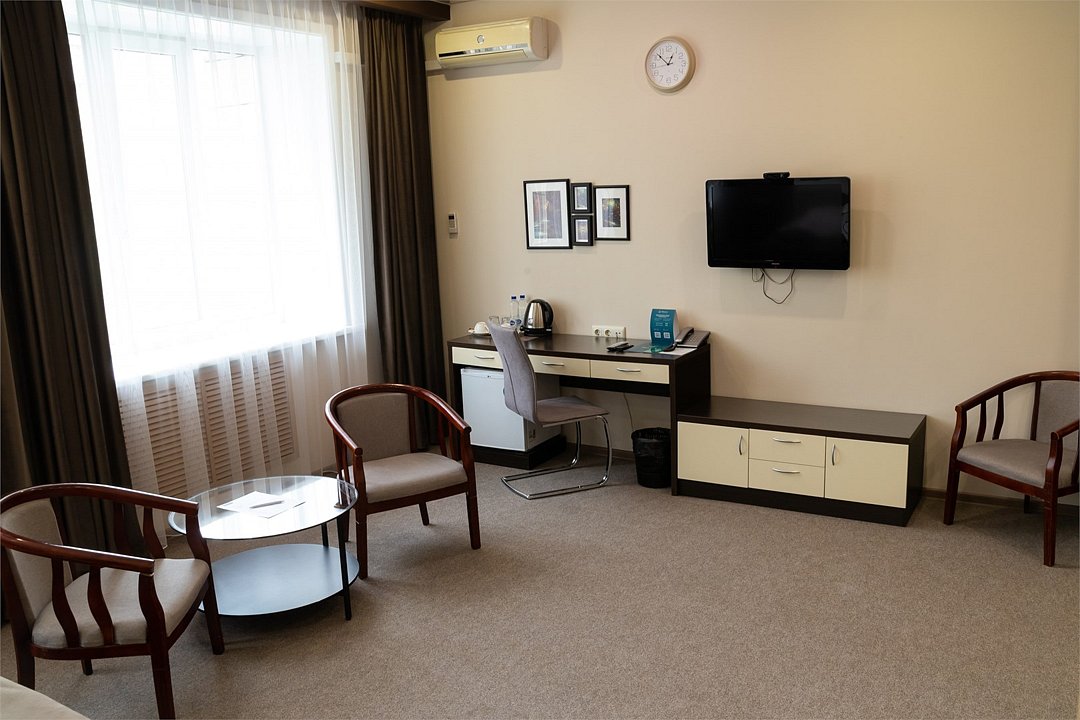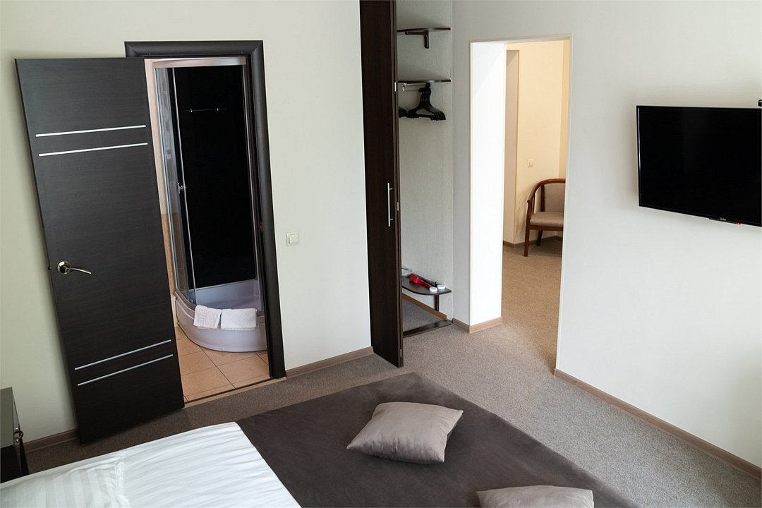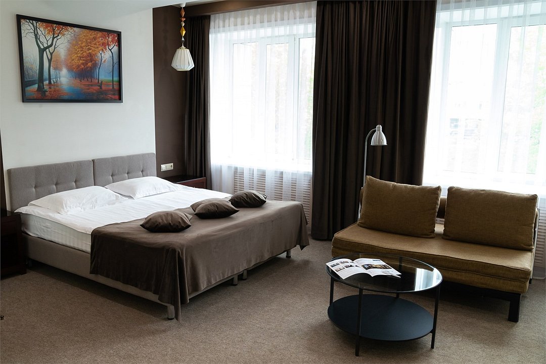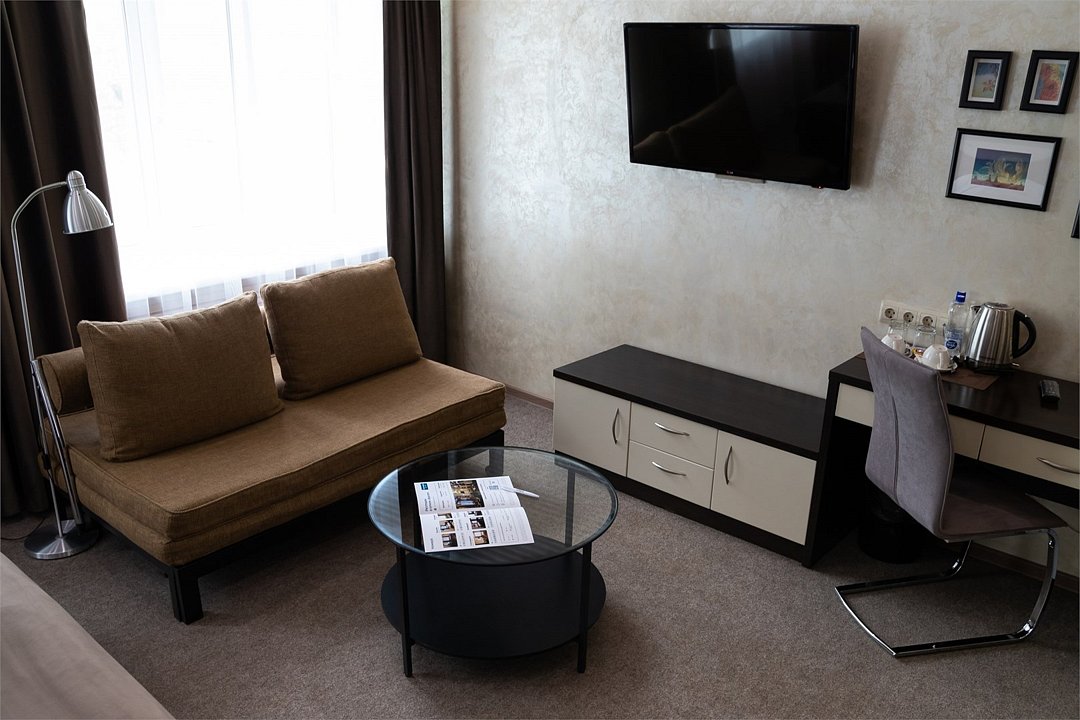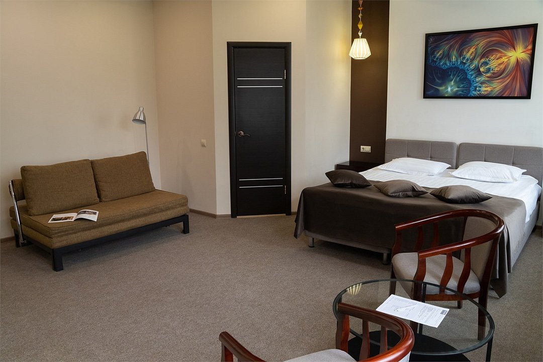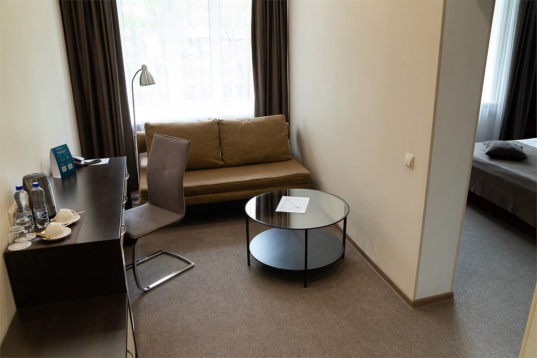 Хороший отдых, отличное настроение и приятные воспоминания Вам обеспечат номера категории Комфорт, состоящие из двух комнат – гостиной и спальной комнаты. В номере имеется все необходимое для комфортного размещения. Что есть в номере: высокоскоростной Интернет, кондиционер, телевизор, телефон. Номер прекрасно подойдет для семейного отдыха, в номере имеется двуспальная кровать и раскладной диван. Заезд с 14:00, выезд в 12:00 Завтрак для Гостей Отеля проходит в ресторане с 8:00 до 11:00. Комплексный завтрак включает в себя кашу, круассан или оладушки с разнообразными начинками и добавками. Для тех Гостей, кто забронировал завтрак и не успевает подойти с 8:00 до 11:00 мы предлагаем забрать ланч-бокс. Для получения завтрака с собой обратитесь на стойку Reception с вечера до 20:00. Номера не адаптированы для мало мобильных групп, лифт отсутствует.Услуги и удобства