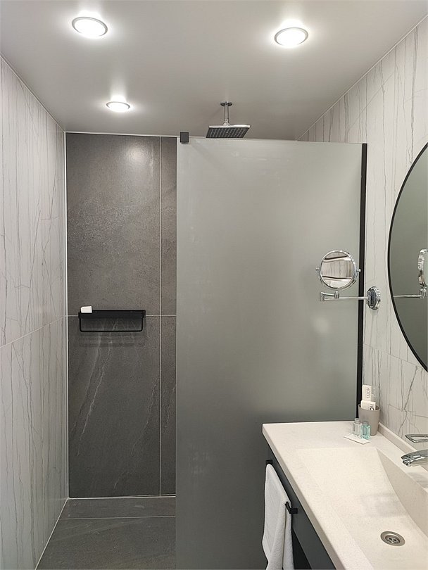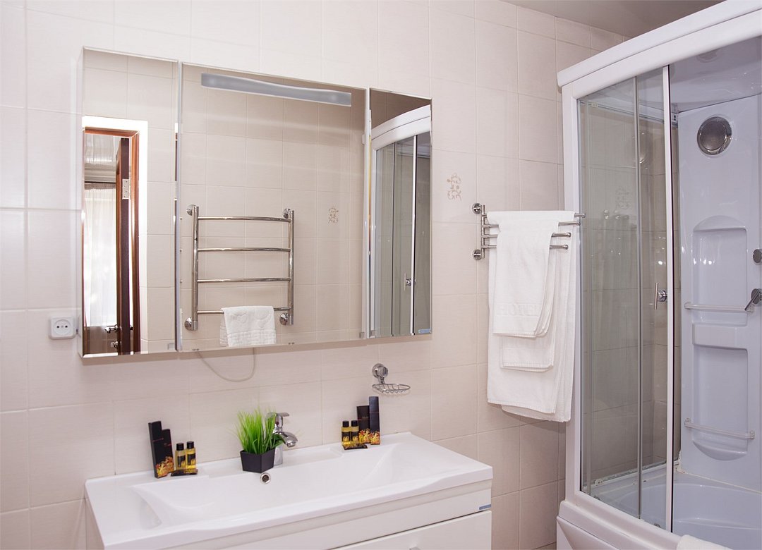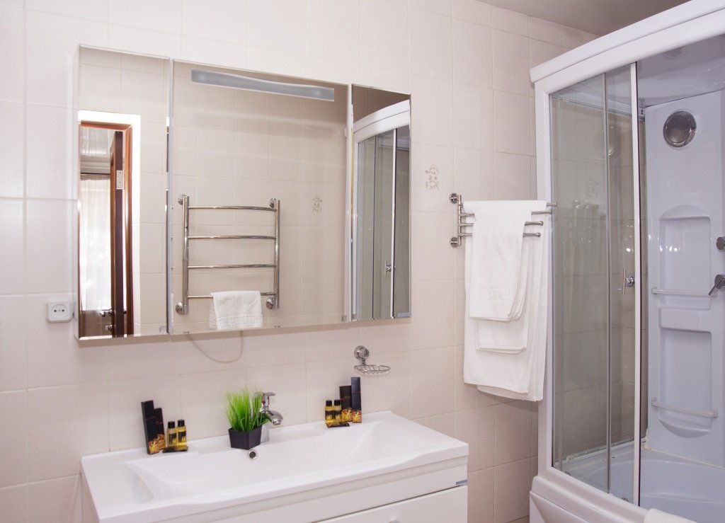 кабельное телевидение, Wi-Fi, холодильник, светильник, фен, душевая кабина, санузел, банные принадлежности, халаты, банные полотенца, тапочки, две односпальные или большая двуспальная кровать, диван, шкаф для одежды, вешалки, журнальный столик, письменный стол, багажная тумба, зеркало, унитаз, раковина, гостиная зона, отопление, вид на город, кулер на этаже, кресло, вид во двор, стаканы, стул, тумба, туалетные средства, внутренний телефон, телевизор с плоским экраном, москитная сетка, номер для некурящих, чайная станция, уборка номера, бутилированная водаВ номере
