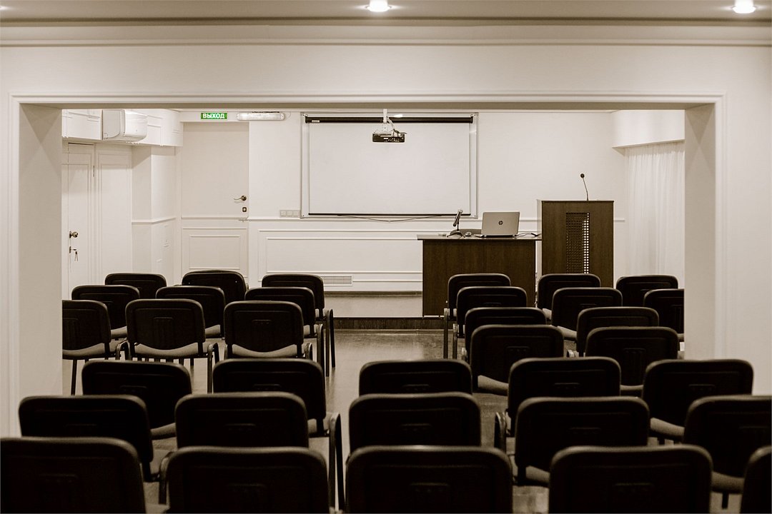 Зал рассчитан на 49 посадочных мест и отлично подходит для проведения конференций, деловых встреч, семинаров.