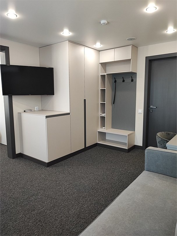 два телевизора, кабельное телевидение, Wi-Fi, интернет, кондиционер, светильник, настольные лампы, фен, ванная комната, санузел, теплый пол, халаты, банные полотенца, тапочки, гигиенические средства, две односпальные или большая двуспальная кровать, шкаф для одежды, вешалки, журнальный столик, багажная тумба, зеркало, комод, чайный набор, обслуживание номеров, унитаз, раковина, мягкая мебель, косметическое зеркало, питьевая вода, гостиная зона, ковровое покрытие, отопление, душ, кулер на этаже, кресло, центральное кондиционирование, вид во двор, стаканы, стул, туалетные средства, раскладной диван, внутренний телефон, мини-холодильник, номер для некурящих, рабочий стол, холодильный шкаф, гигиенический душ, чайная станция, двуспальный раскладной диван-кровать, уборка номера, бутилированная вода, шапочка для душаВ номере