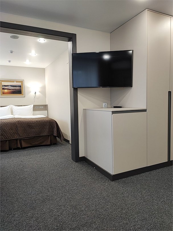 Двухкомнатный комфортабельный номер с гостиной и спальней. Элегантный декор, двуспальная кровать, большие комнаты. Вид из окна во внутренний дворик. Возможно одноместное и двухместное размещение. В номере: двуспальная кровать (180*200) или 2 односпальные кровати (90*200); письменный стол; чайная станция телефон; платяной шкаф, подбагажник; холодильник; два телевизора с плоским экраном, кабельное телевидение; ванная комната с душевой зоной, туалетом; фен, набор полотенец, банные халаты, одноразовые банные принадлежности (гель для душа, шампунь, мыло, шапочка для душа, зубная паста, зубная щетка, бритвенный набор)Услуги и удобства