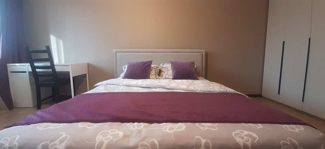 Квартира оснащена всем необходимым для комфортного проживания: удобной мебелью, бытовой техникой и кухонной утварью.