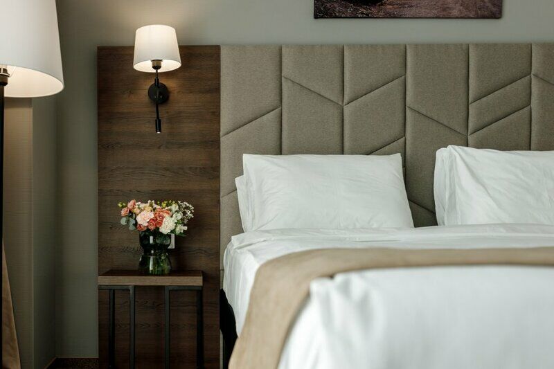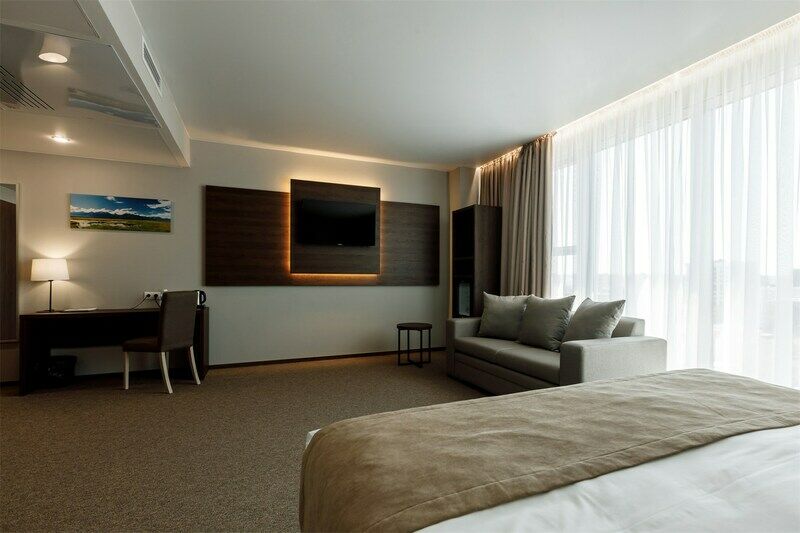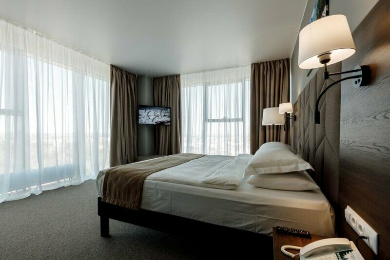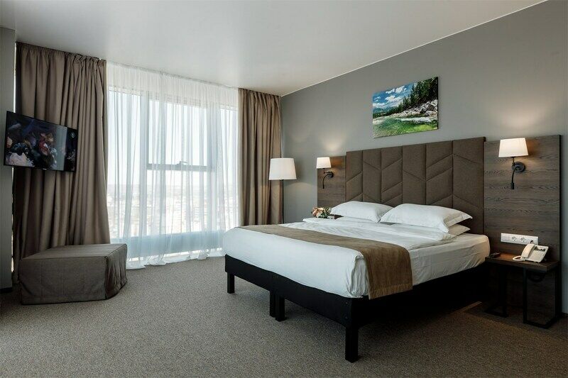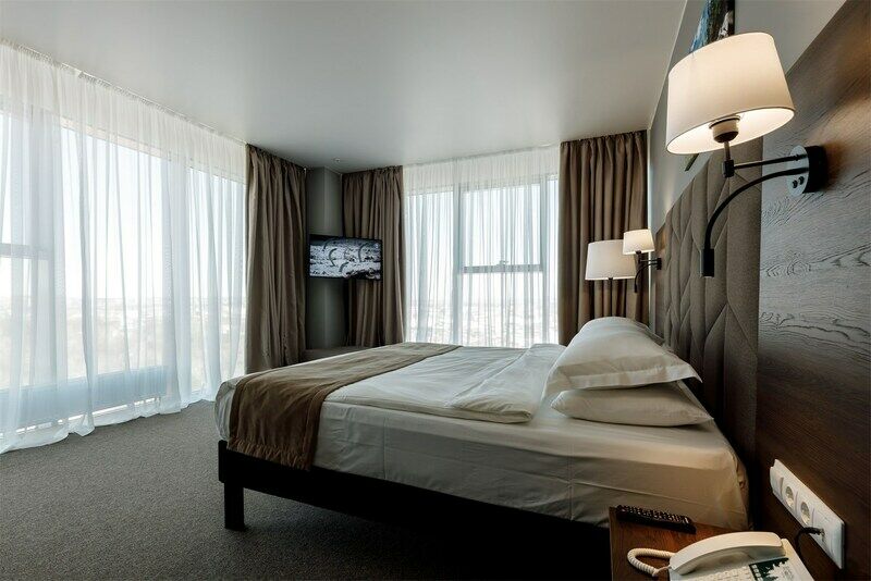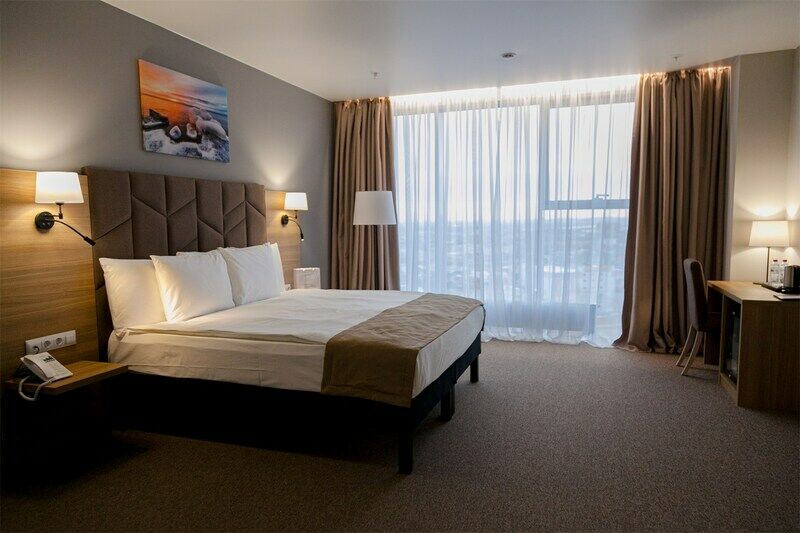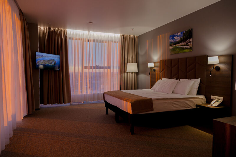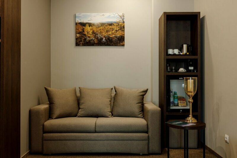 Отель разместился в современном многоэтажном здании, возвышающемся на пересечении Советской и Байкальской улиц. Ресепшен располагается на первом этаже, а номера с панорамными окнами — на седьмом. Жилой фонд включает в себя комфортабельные номера улучшенных категорий. В каждом имеется индивидуальный санузел с душевой кабиной, кондиционер, бытовая техника — плазменный телевизор, фен, электрочайник. Стильный интерьер комнат выдержан в приятных бежевых оттенках, из окон открываются живописные виды на город.