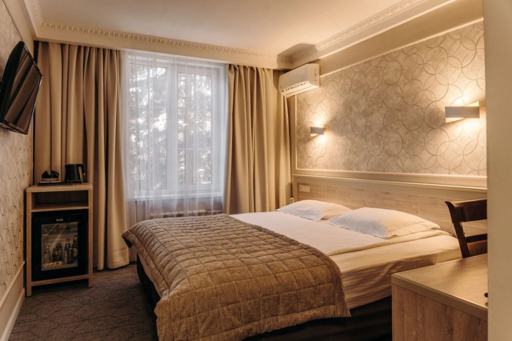 Семейный отдыхДостоинстваЗдесь есть все для комфортного пребывания: фен, телевизор, кондиционер, мини-бар, услуги по стирке и глажке. Кстати, если захотите, вам принесут гладильную доску и отличный утюг прямо в номер. Завтраки предлагаются в уютном зале "китайского" ресторана. Шведский стол с разнообразным выбором блюд подойдет как для легкого, так и для плотного завтрака. В отеле также есть бар и второй ресторан - "Охотник", где основу меню составляют блюда из дичи.