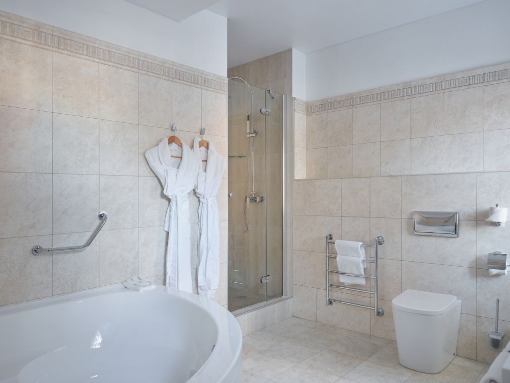 В распоряжении гостей прекрасная двуспальная кровать с комфортными постельными принадлежностями, оборудованное рабочее место, круглый обеденный стол, уютный диван и кресла, современное техническое оснащение, индивидуальная система кондиционирования, LCD-телевизоры, бесплатный wi-fi. Ванная комната оснащена джакузи, душевой кабиной, биде, полом с подогревом.