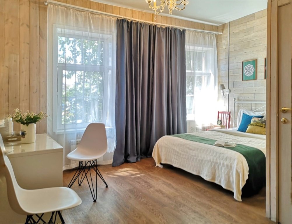 Кровать в общем номере (мужской номер) с красивым видом из окна