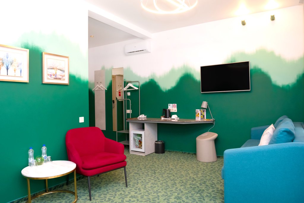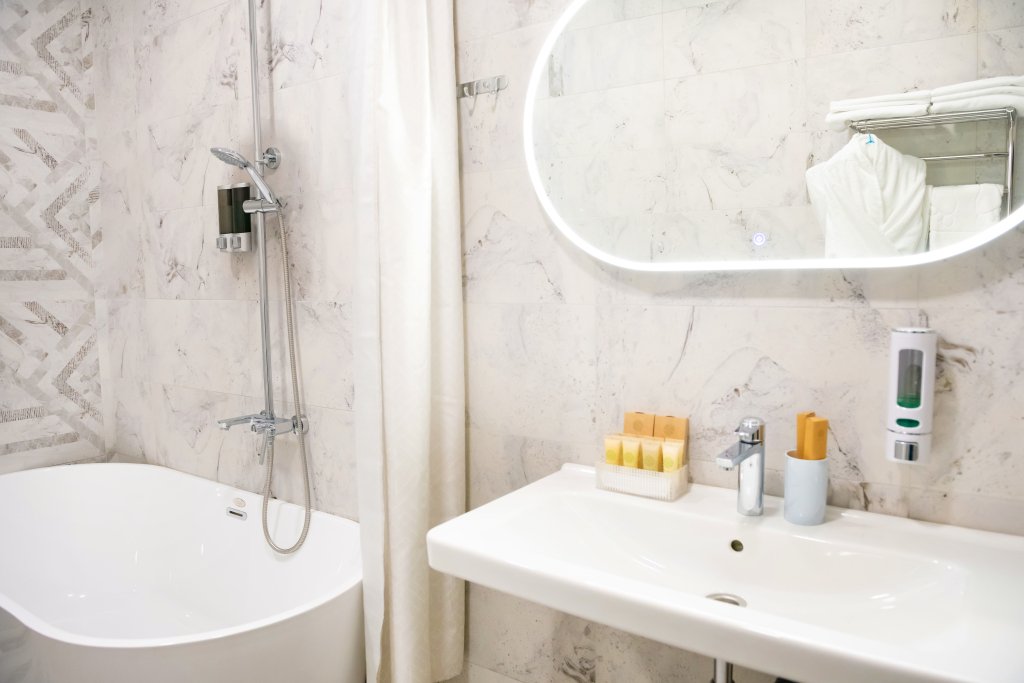 Семейный отдыхДостоинстваСовременный отель, который я настоятельно рекомендую)) Мы бронировали семейный номер, очень довольны. Кровать исключительно удобная, а ванная комната просторная и стильная. Свежий ремонт и кондиционер добавляют комфорта и удовольствия от пребывания. Отдельно стоит упомянуть завтраки - это был настоящий праздник живота)))) На столе просто все, что только можно было представить, и все невероятно вкусно.