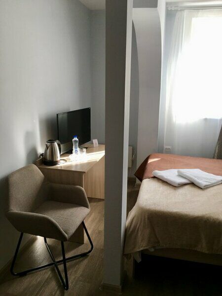 Путешествие с семьейСоотношение цены - качества просто супер!Проезжали через Иркутск проездом, нужен был недорогой отель всего на 1 ночь. Нас было трое: семейная пара с 3-х летним ребёнком. Ранее искали местечко именно возле «Модного квартала», в итоге наткнулись через 2ГИС на этот отель! Местоположение нас более, чем устроило, заранее ничего не бронировали, позвонили по факту сразу после посадки в аэропорт Иркутска. За предварительный звонок девушка-администратор (простите, не помню как зовут) сделала нам скидку в 200-300р, мелочь, а приятно 😇 Приехав в отель, она нас очень хорошо встретила, приветливая, гостеприимная, приятная, улыбчивая девушка, что кстати в Иркутске считается большой редкостью ☝🏻 Вообще сервиса в Иркутске, конечно, нет (конкретно в магазинах, кафе, отелях, и прочих), а здесь я прям приятно была удивлена! Сервис для такого отеля на высоте 👍🏻 В оплату за сутки так же входят завтраки! Повару отдельное спасибо за завтрак, все было приготовлено очень вкусно и по-домашнему, при чем довольно таки сытный завтрак: 1. Каша манная (идеально приготовленная) 2. Омлет с колбаской 3. Блинчики с вареньем. Довольно таки много, я считаю! Что касаемо номеров... у нас был стандартный номер за 2800 (учитывая скидку), в номере имелась 2-спальная кровать (с афигенно комфортным мягким матрацем и воздушными подушками), по-моему я так комфортно ещё нигде не засыпала 😂 В номерах также имеется душевая, фен, водичка, полотенца, одноразовые тапочки, и прочие мелочи! В номере чисто и очень уютно! Дизайн интерьера немного смешанный, но приятный! Номера светлые, уютные. В номерах не курят, что очень хорошо, если кому надо можно выйти на задний дворик через запасной выход! Единственный минус - это то что рядом нет парковки, и отель находится возле трамвайных путей! Но если вы находитесь там проездом на 1-2 ночи, то мягкая кровать, где глаза сами мгновенно закрываются, а тело утопает в нежности, все компенсирует 😂👍🏻 Обязательно буду рекомендовать вас своим друзьям, кто будет проезжать мимо Иркутска 😉 А вам желаю побольше довольных клиентов и дальнейшего процветания! 🌹🌹🌹 Возможно какая-то установка шумоизоляции вам очень бы не помешала! В остальном все отлично, продолжайте в том же духе 💪🏻 Спасибо Вам большое! 😌