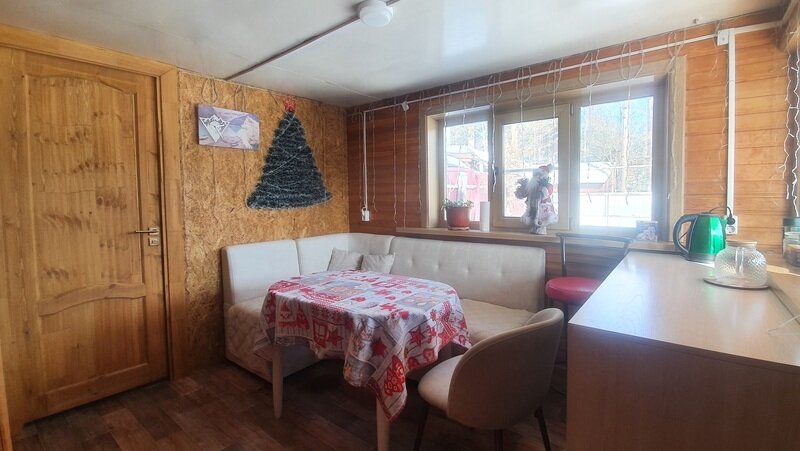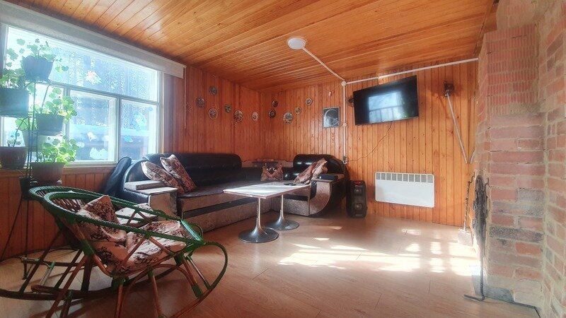 К проживанию подготовлен комфортабельный дом для шестерых человек, оснащенный всем необходимым. Спальные места представлены уютной кроватью и удобными двуспальными диванами, постельное белье и набор полотенец предоставляется. Ванная комната оборудована стиральной машиной и новой сантехникой. Прохладный вечер можно провести у камина, также есть телевизор, караоке и бесплатный Wi-Fi.