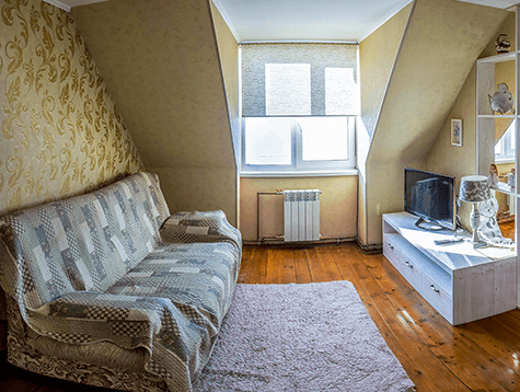 Включает: большая двуспальная кровать, две прикроватные тумбочки, плазменный ТВ со спутниковыми каналами (130 каналов), холодильник, косметический столик, зеркало, фен, электрический чайник, гардеробная, санузел с душевой кабиной. Наличие раскладного двухместного дивана делает этот номер идеальным для семейной пары с детьми.