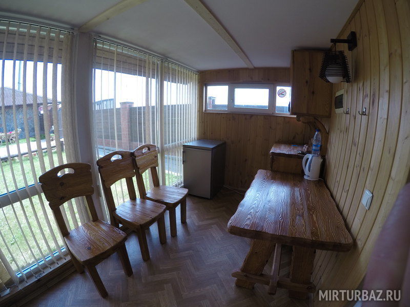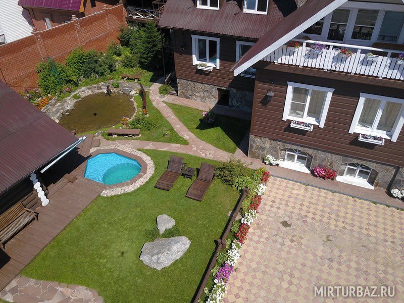На территории гостевого дома, возле дикого пруда, расположен уютный семейный домик, который выполнен в стиле охотничьей избушки из цельного кедра. Примечательной особенностью и функциональным достоинством домика является русская баня с дровяной печью, кухня-столовая, зона барбекю и уличный бассейн с проточной водой Байкала, что делает пребывание в нем в разы приятней.