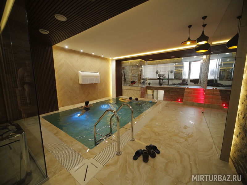 Читать полностьюОтдельный парильный блок в Гостевом доме состоит из просторной финской сауны, отделанной материалами исключительной экологической чистоты: кедр, натуральный камень, гималайская соль, которая под воздействием тепла позитивно влияет на организм человека; турецкого хаммама, в который подается умеренный пар из сибирских трав; плавательного бассейна с байкальской водой; небольшого тренажерного зала и комнатой отдыха.