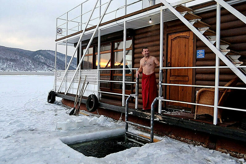 Читать полностьюВы можете попариться в бане на воде. А затем прямо из парной окунуться в прохладную воду Байкала. В просторной комнате отдыха вам преложат чай из сибирских трав. На втором этаже расположена тендовая палуба.