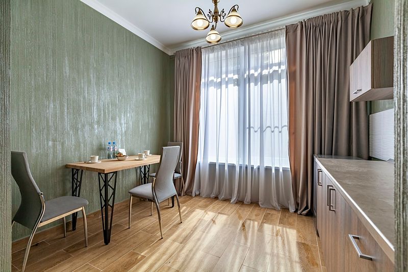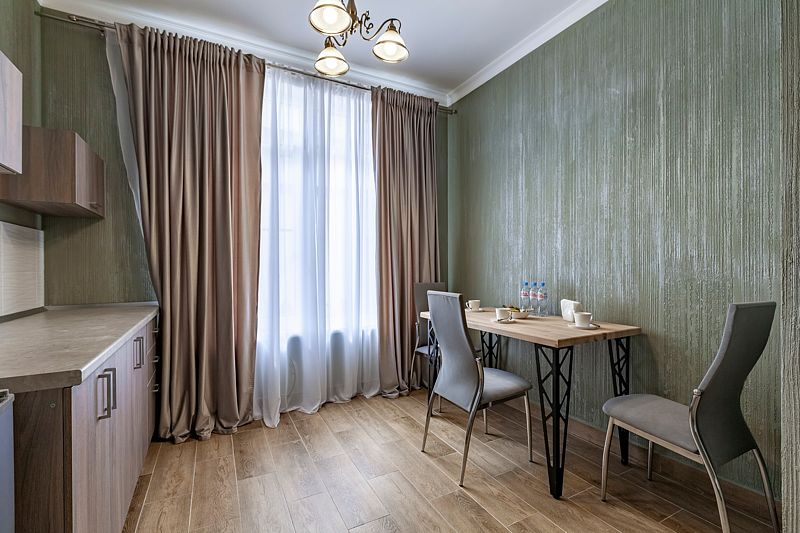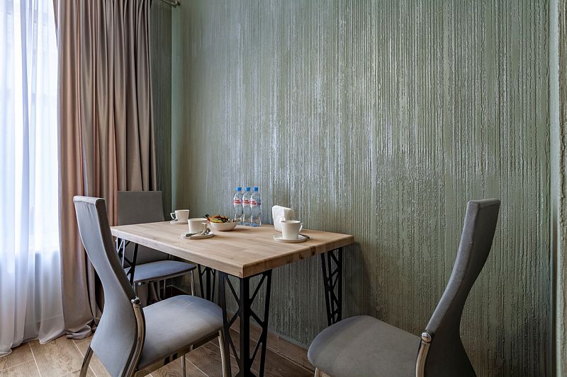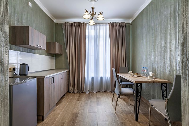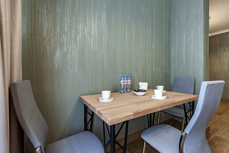 Апартаменты VIP площадью пятьдесят девять квадратных метров с видом во двор. Подходит для размещения пяти человек (четыре основных места и одно дополнительное). Имеет спальню с приятным интерьером.