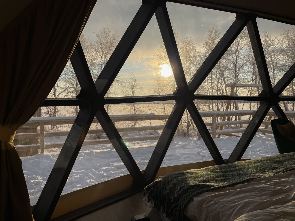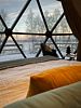 Размещение в комфортабельной круглогодичной сфере с потрясающим видом из панорамного окна и дизайнерским интерьером. Конструкция модуля выполнена в виде полусферы без единого угла. Это подарит ощущение объемного пространства и большого количества света! Интерьер геокупола «Лето» выполнен в стиле «Летней тундры», создающий уют и передавая натуральные краски спелой морошки, атмосферу белых ночей и северного лета. Насладитесь чарующими рассветами над озером, которыми вы можете любоваться прямо с кровати через панорамное окно вашего геокупола. Пространство внутри купола не имеет перегородок и позволяет перемещаться внутри по кругу. У сферы есть собственная деревянная терраса с видом на озеро, на которой расположены кресла и столик, вечером можно включить декоративную подсветку в виде гирлянды. На территории глэмпинга – BBQ-зона у каждого геокупола, качели, общий пирс.Услуги и удобства